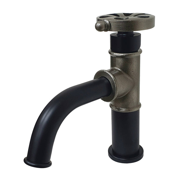 Belknap KS2824RX Single-Handle 1-Hole Deck Mount Bathroom Faucet with Push Pop-Up, Matte Black/Black Stainless