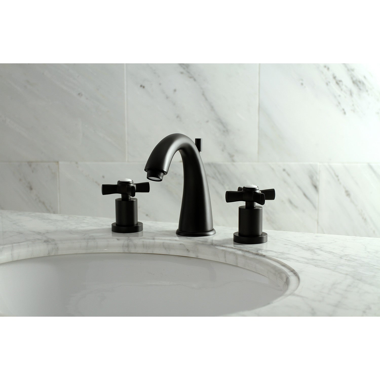 Millennium KS2960ZX Two-Handle 3-Hole Deck Mount Widespread Bathroom Faucet with Brass Pop-Up, Matte Black