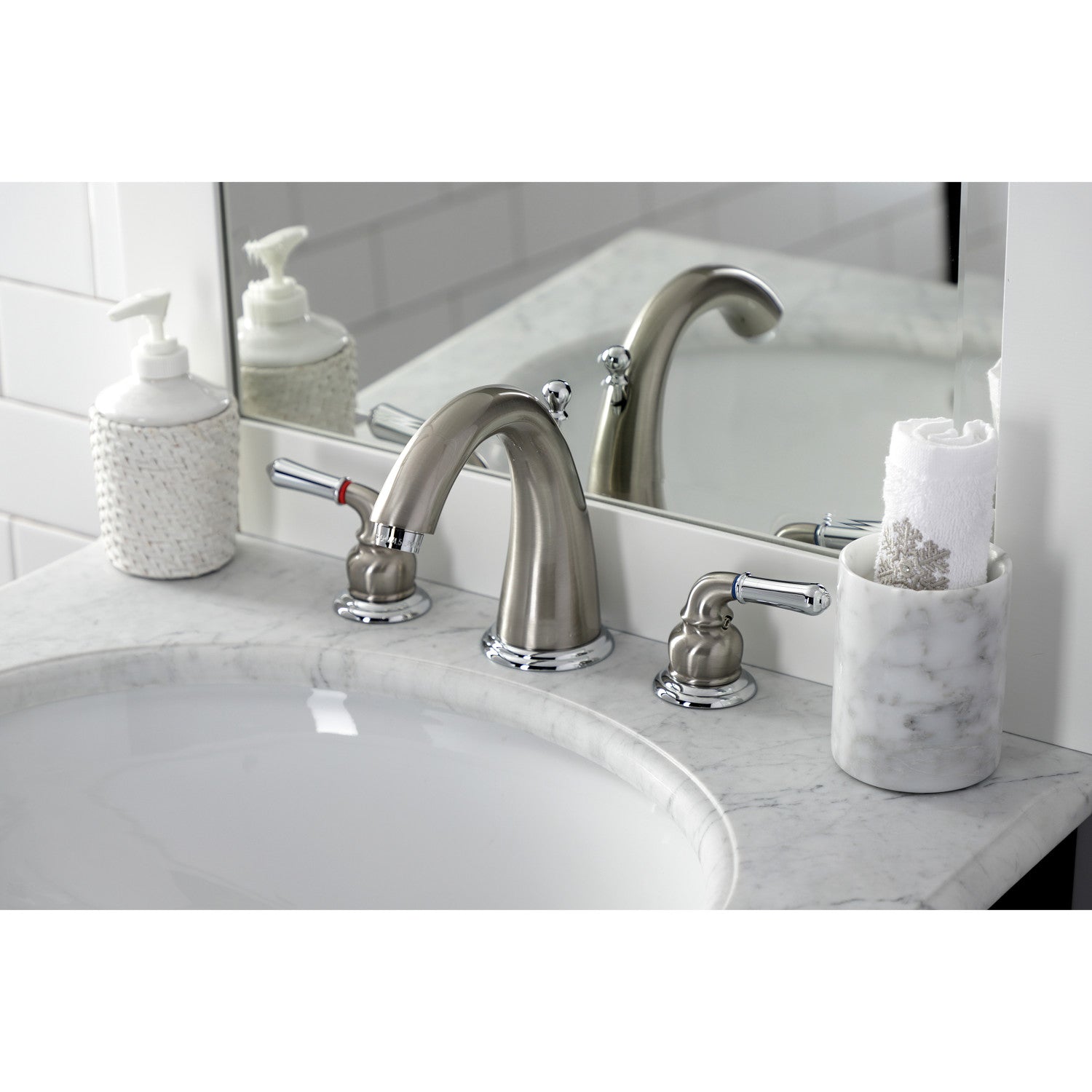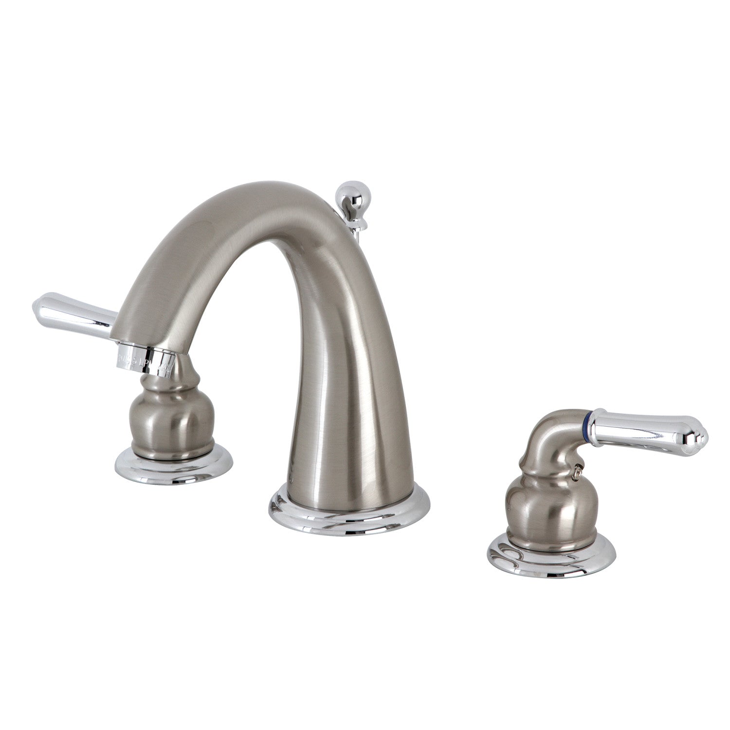 Naples KS2967 Two-Handle 3-Hole Deck Mount Widespread Bathroom Faucet with Brass Pop-Up, Brushed Nickel/Polished Chrome