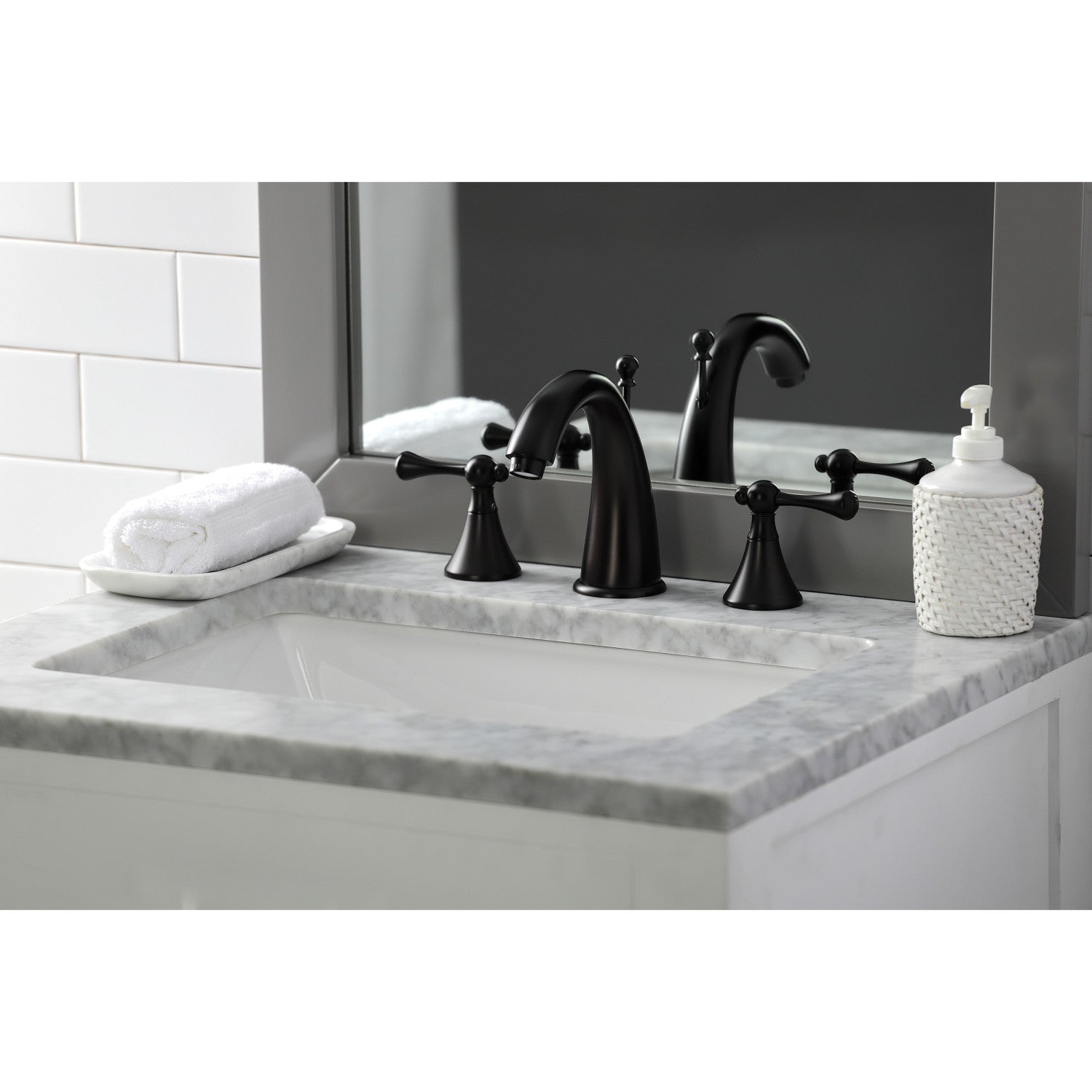 English Country KS2975BL Two-Handle 3-Hole Deck Mount Widespread Bathroom Faucet with Brass Pop-Up, Oil Rubbed Bronze