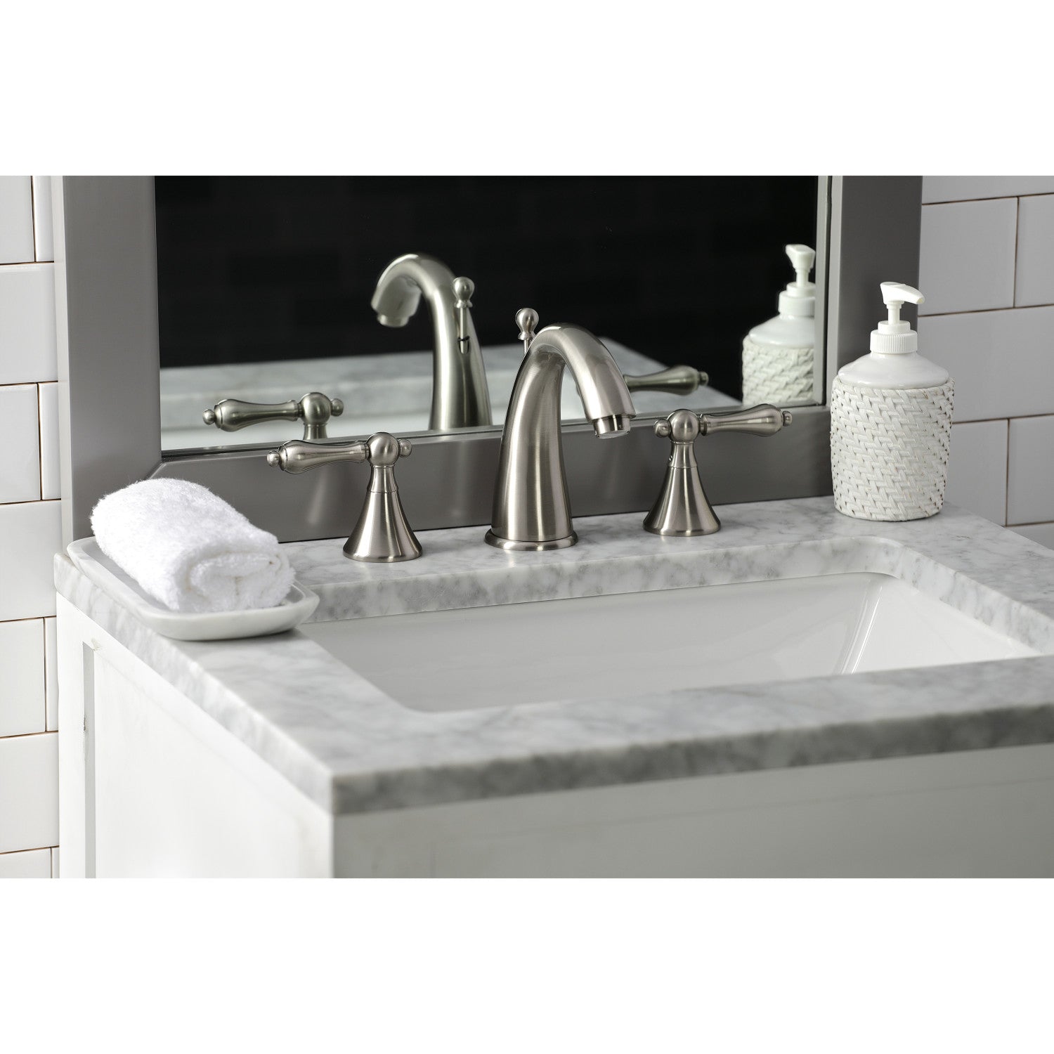 This faucet exemplifies sophisticated grace and beauty while offering top-of-the-line endurance and dependability. Ideal for more spacious bathrooms, widespread faucets are more spread apart and feature a 3-hole installation. The Naples 8-inch widespread bathroom faucet with brass pop-up and its featured sturdy brass construction and premium brushed nickel finish are guaranteed to glamorize your home's traditional ensemble for years to come. Leave your guests with the impression of unparalleled elegance and posh with the exquisite details that is prominent throughout this fixture. A matching finish drain is also included.