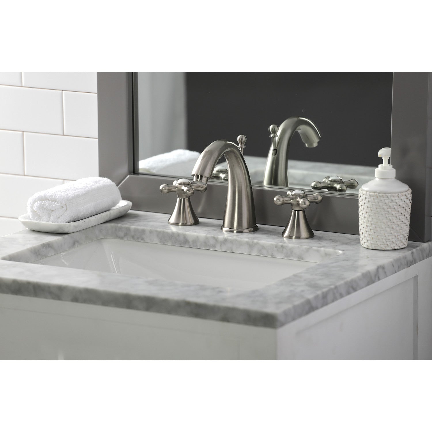 This faucet exemplifies sophisticated grace and beauty while offering top-of-the-line endurance and dependability. Ideal for more spacious bathrooms, widespread faucets are more spread apart and feature a 3-hole installation. The Naples 8-inch widespread bathroom faucet with brass pop-up and its featured sturdy brass construction and premium brushed nickel finish are guaranteed to glamorize your home's traditional ensemble for years to come. Leave your guests with the impression of unparalleled elegance and posh with the exquisite details that is prominent throughout this fixture. A matching finish drain is also included.