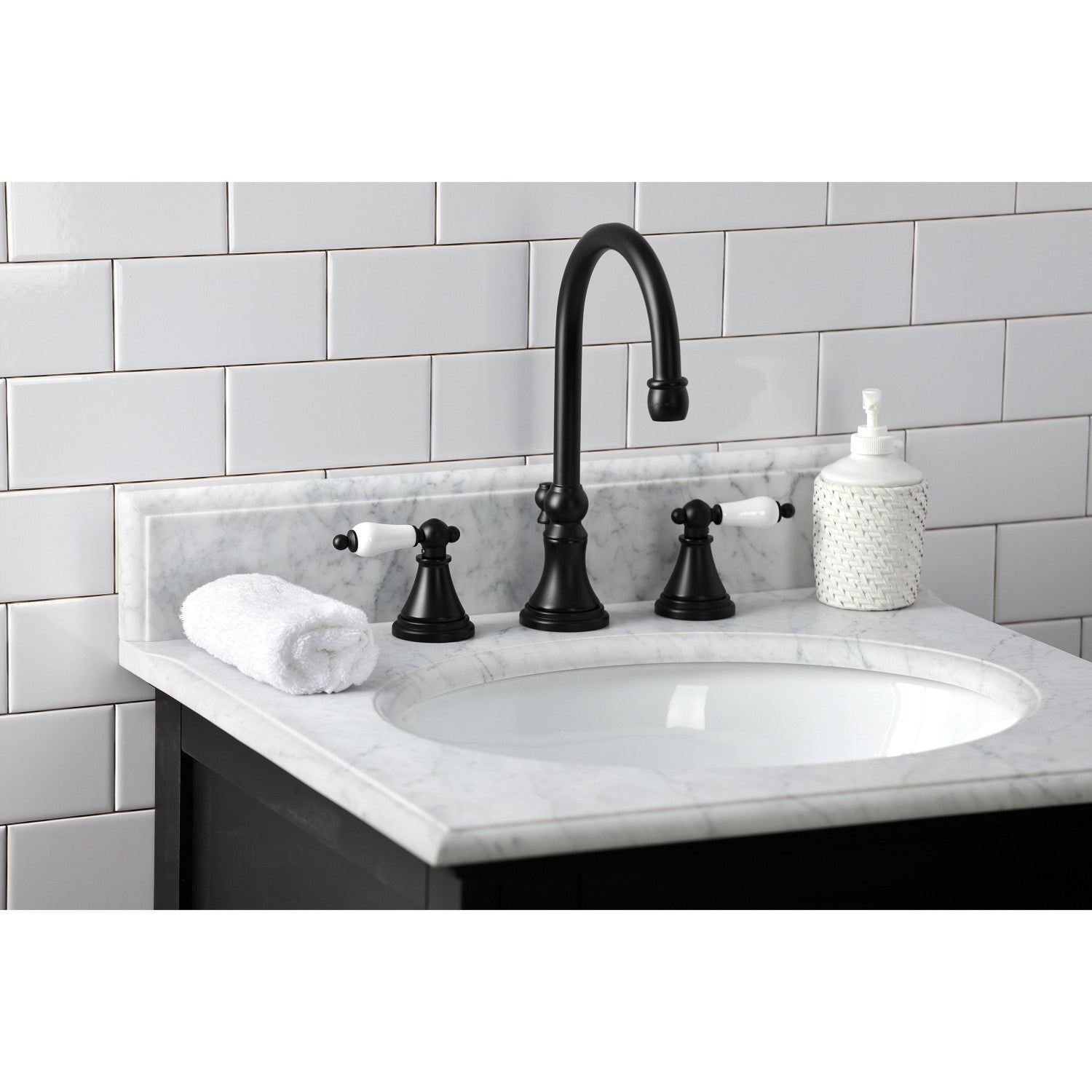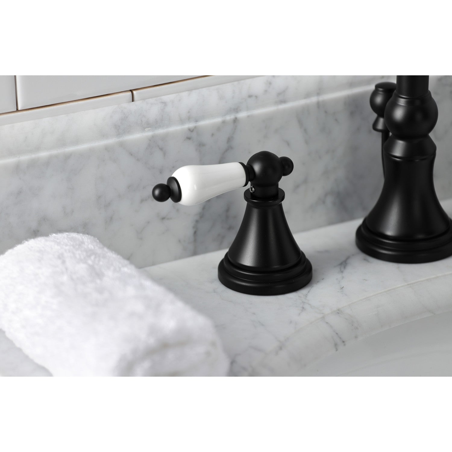 Stylized for excellence in design and performance, this faucet will take your bathroom space to the next level. Ideal for more spacious bathrooms, widespread faucets are more spread apart and feature a 3-hole installation. The Governor 8-inch widespread bathroom faucet and its featured sturdy brass construction and premium matte black finish are guaranteed to glamorize your home's traditional ensemble for years to come. A matching finish drain is also included.