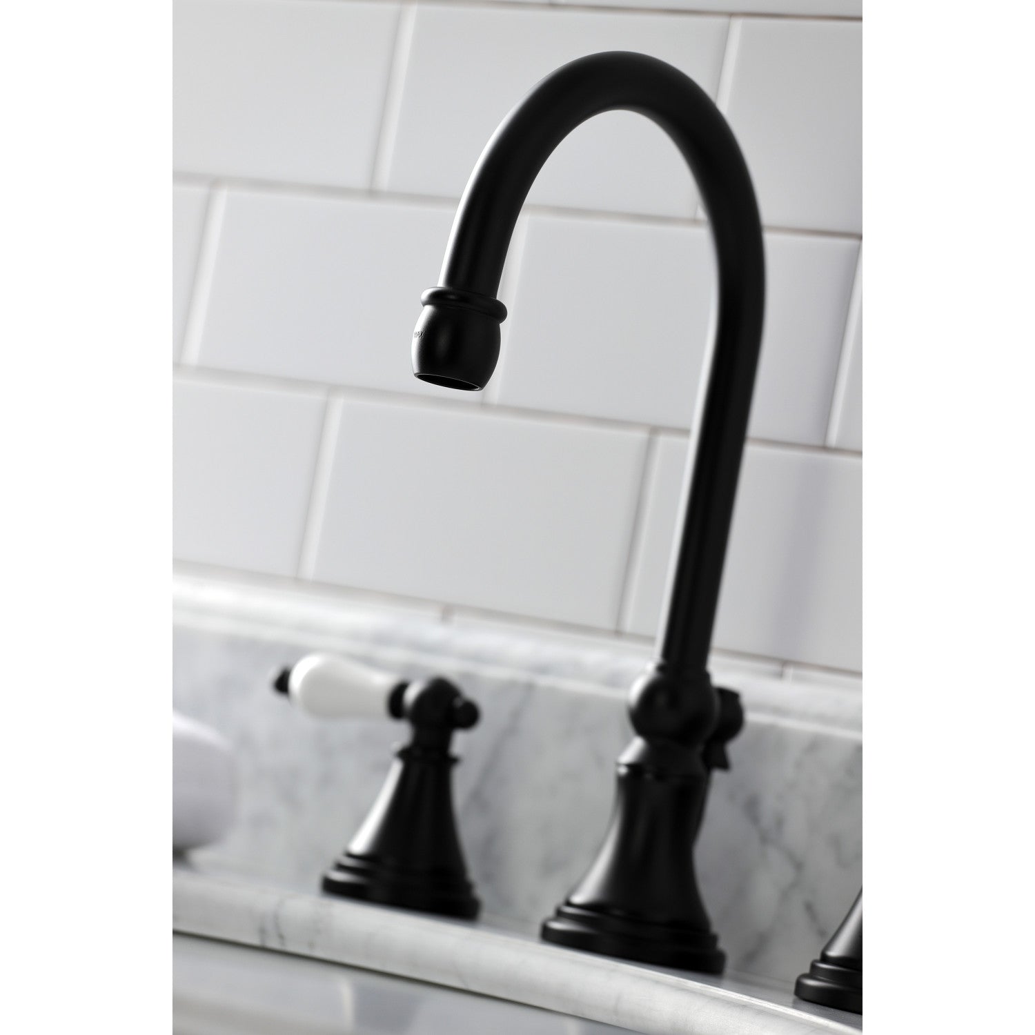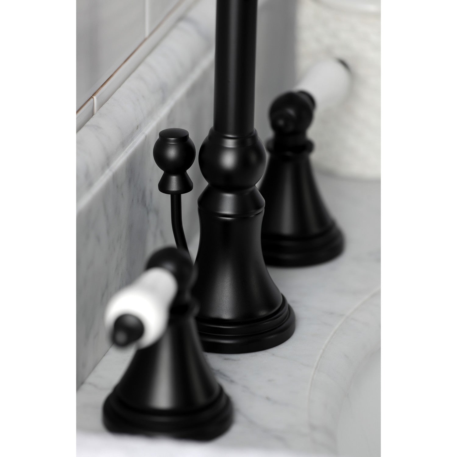 Governor KS2980PL Two-Handle 3-Hole Deck Mount Widespread Bathroom Faucet with Brass Pop-Up, Matte Black