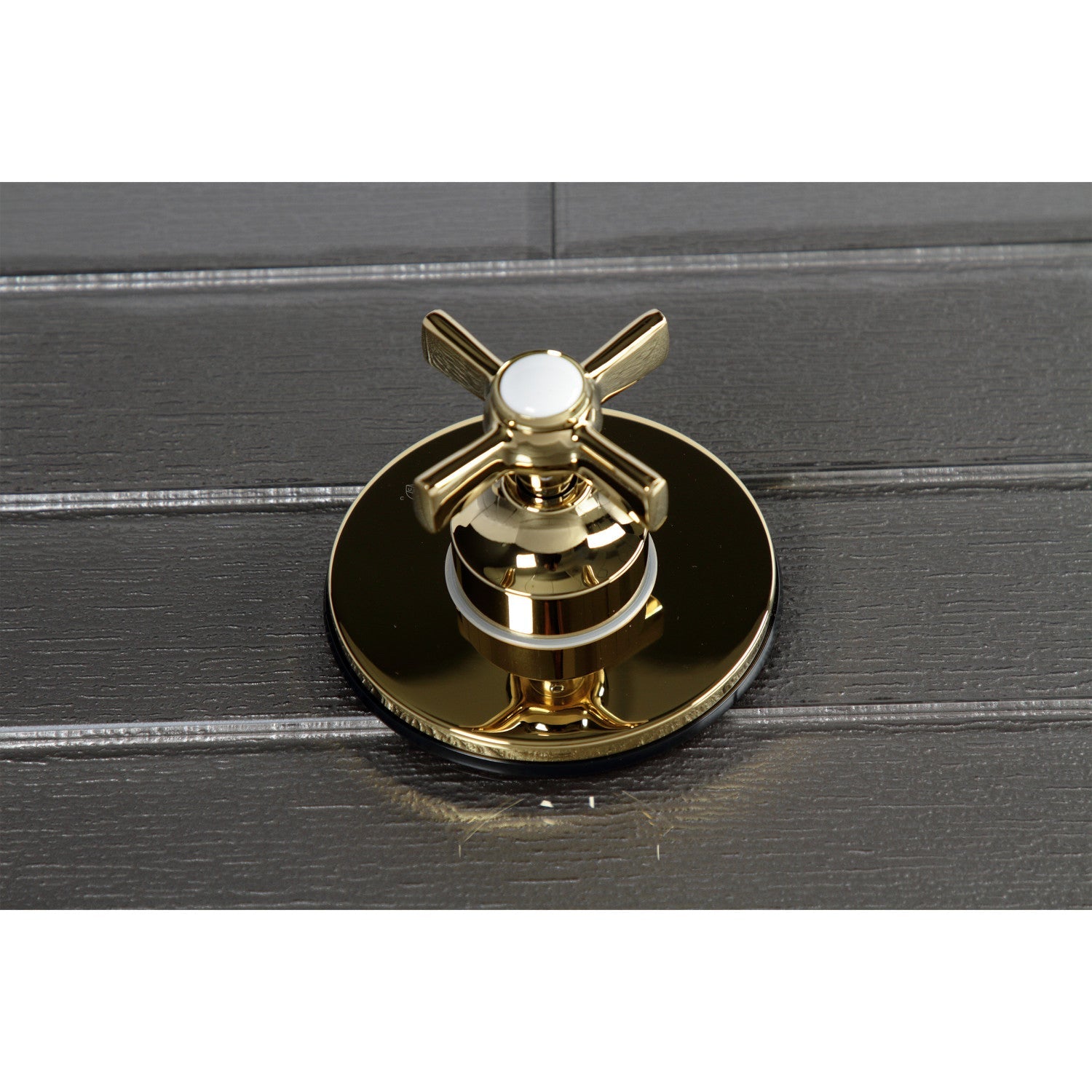 This cross handle, diverter valve and face plate help direct water to divert into three different ways, usually for the shower head, hand shower or tub spout. Each component is crafted with solid brass for durable long-term use. The diverter valve features one inlet to three outlets, to move water to its desired destination. Easy to install, the diverter is usable with hot and cold water and complies with other traditional designs.