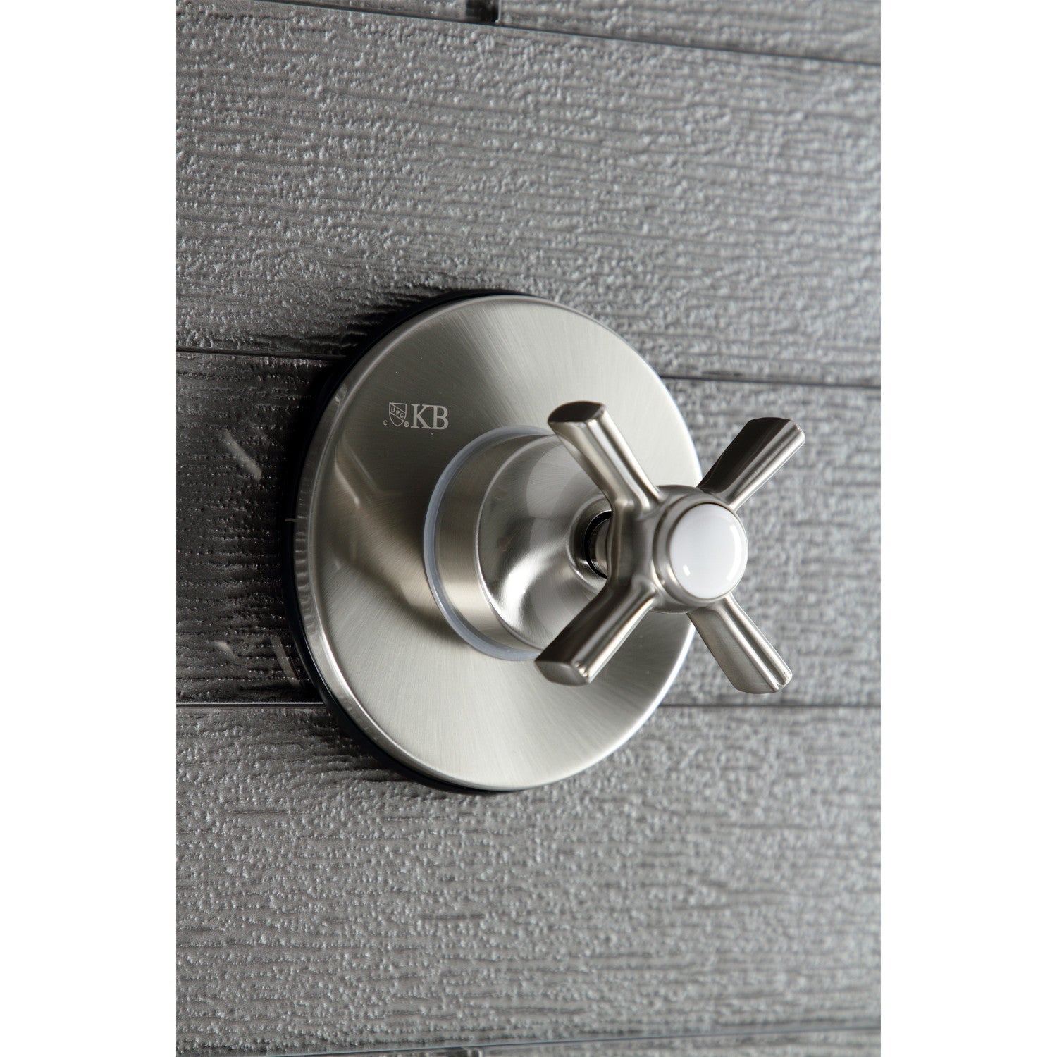 This cross handle, diverter valve and face plate help direct water to divert into three different ways, usually for the shower head, hand shower or tub spout. Each component is crafted with solid brass for durable long-term use. The diverter valve features one inlet to three outlets, to move water to its desired destination. Easy to install, the diverter is usable with hot and cold water and complies with other traditional designs.