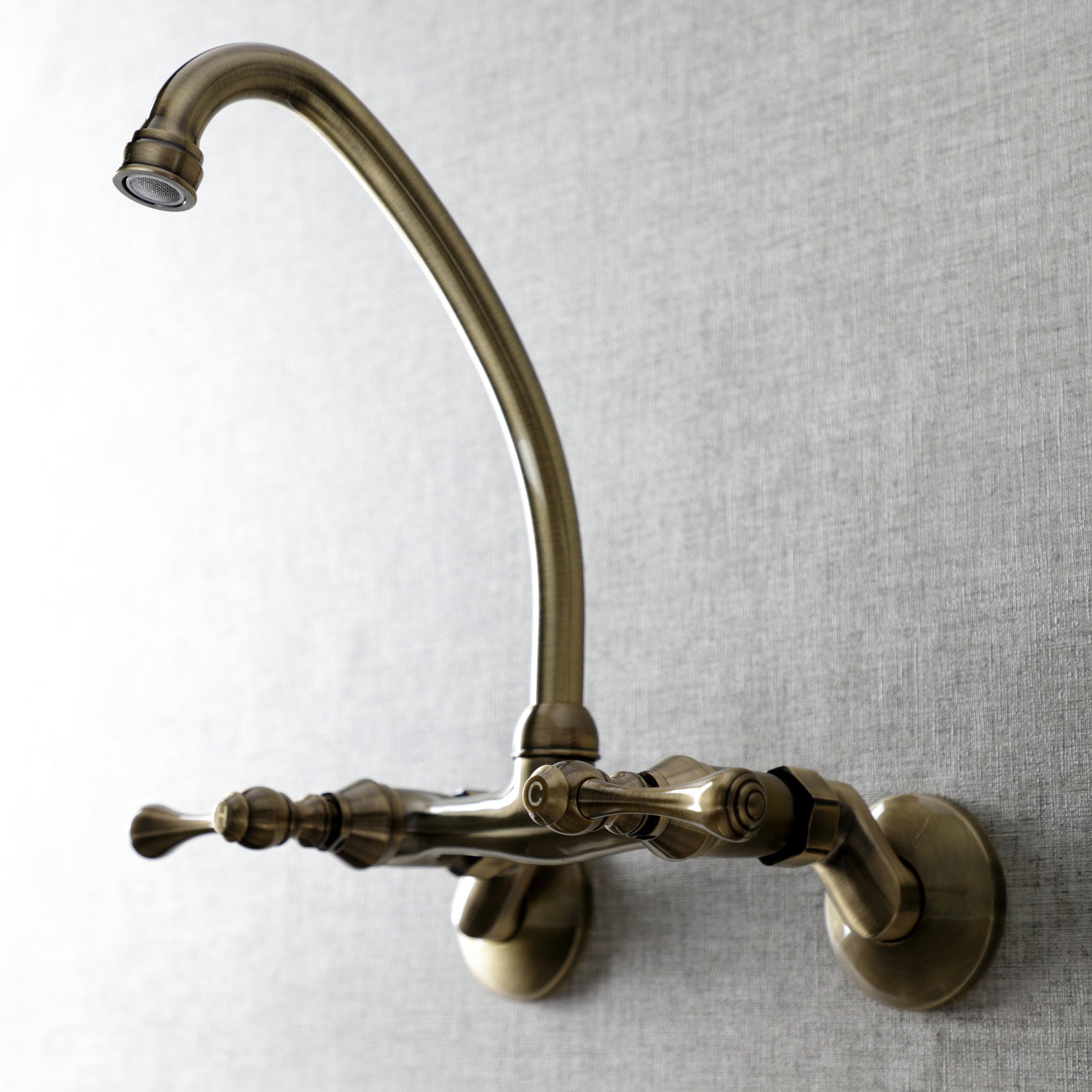 Kingston KS314AB Two-Handle 2-Hole Wall Mount Kitchen Faucet, Antique Brass