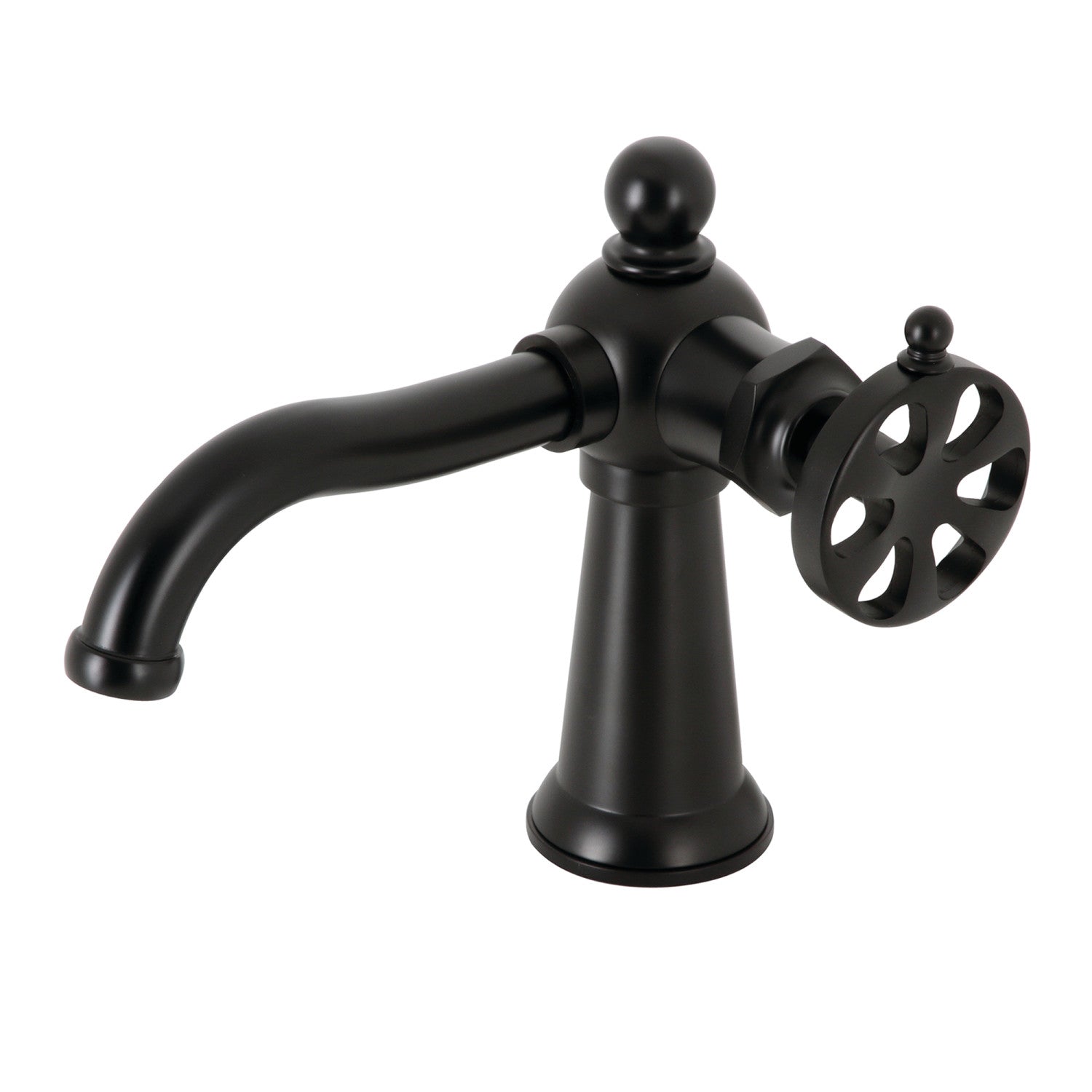 The exquisite design of this faucet tastefully flatters the elegant architecture of traditional homes with its fine detailing. Single-hole bathroom faucets provide a more streamlined look. Also, they will allow your bathroom to appear more spacious with the limited counter space they require. The Belknap single-handle bathroom faucet with push pop-up and its featured sturdy brass construction and premium matte black finish are guaranteed to glamorize your home's traditional ensemble for years to come. A matching finish drain is also included.