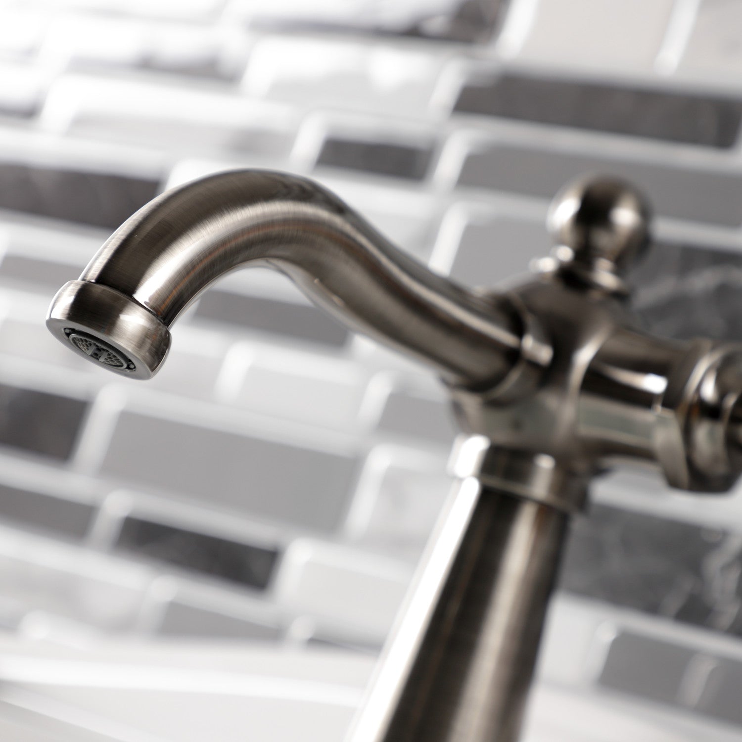Webb KS354RKXVN Single-Handle 1-Hole Deck Mount Bathroom Faucet with Knurled Handle and Push Pop-Up Drain, Black Stainless