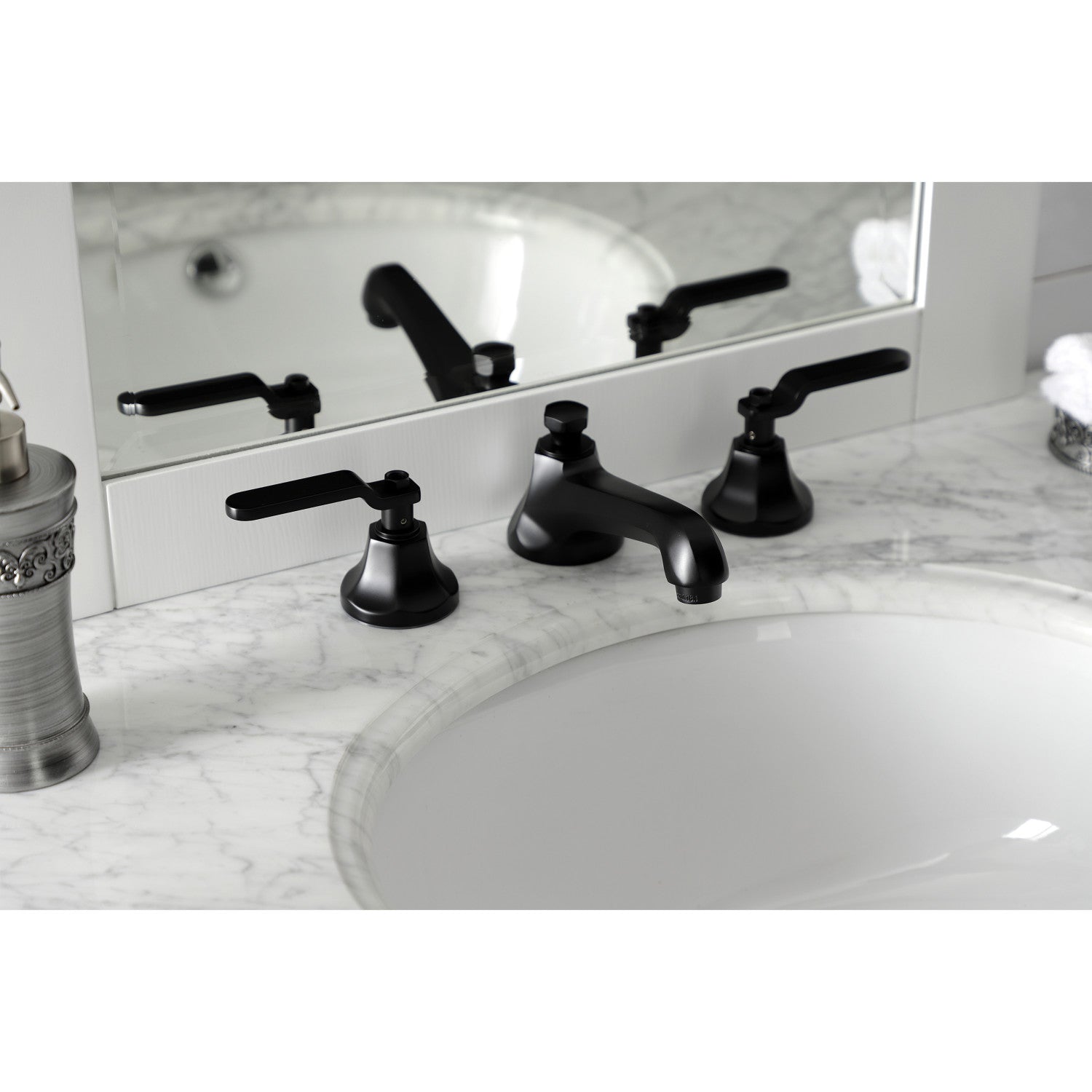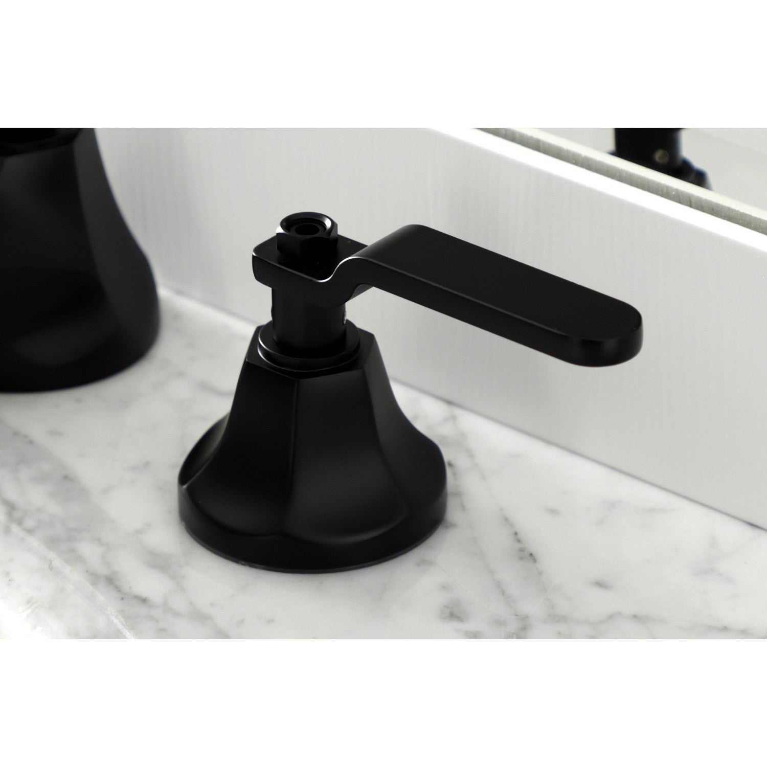 Whitaker KS4460KL Two-Handle 3-Hole Deck Mount Widespread Bathroom Faucet with Brass Pop-Up, Matte Black