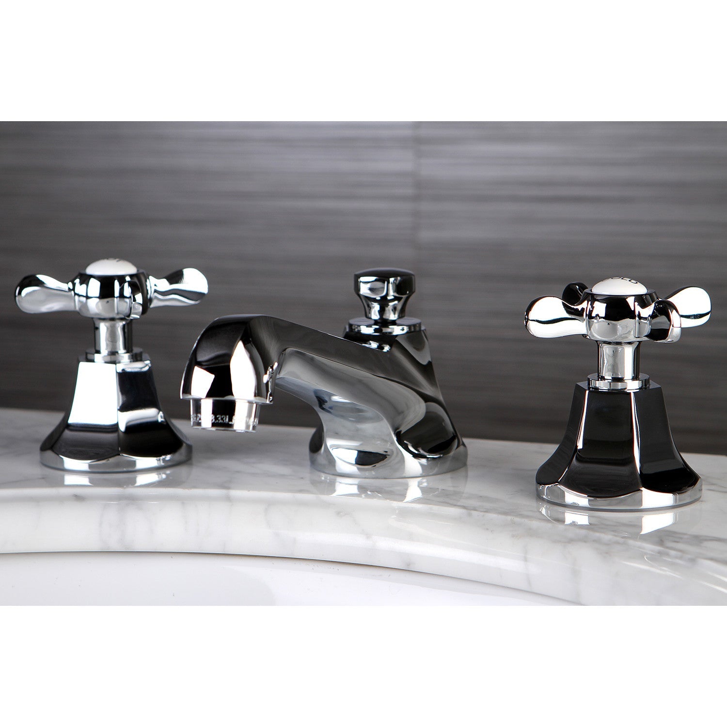 Essex KS4461BEX Two-Handle 3-Hole Deck Mount Widespread Bathroom Faucet with Brass Pop-Up, Polished Chrome