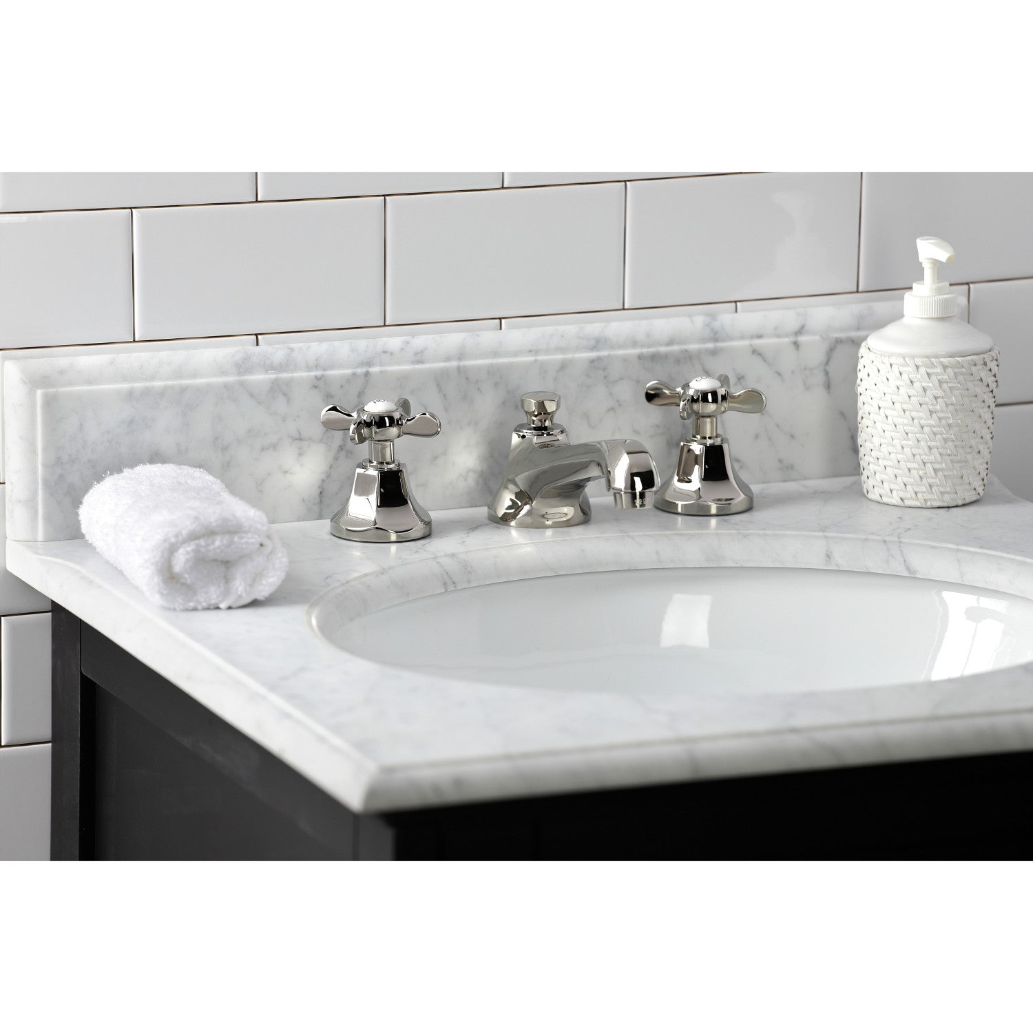 Essex KS4466BEX Two-Handle 3-Hole Deck Mount Widespread Bathroom Faucet with Brass Pop-Up, Polished Nickel