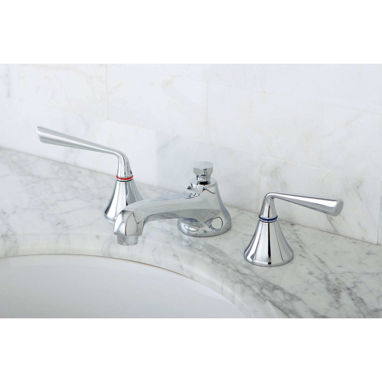 KS4471ZL Two-Handle 3-Hole Deck Mount Widespread Bathroom Faucet with Brass Pop-Up, Polished Chrome