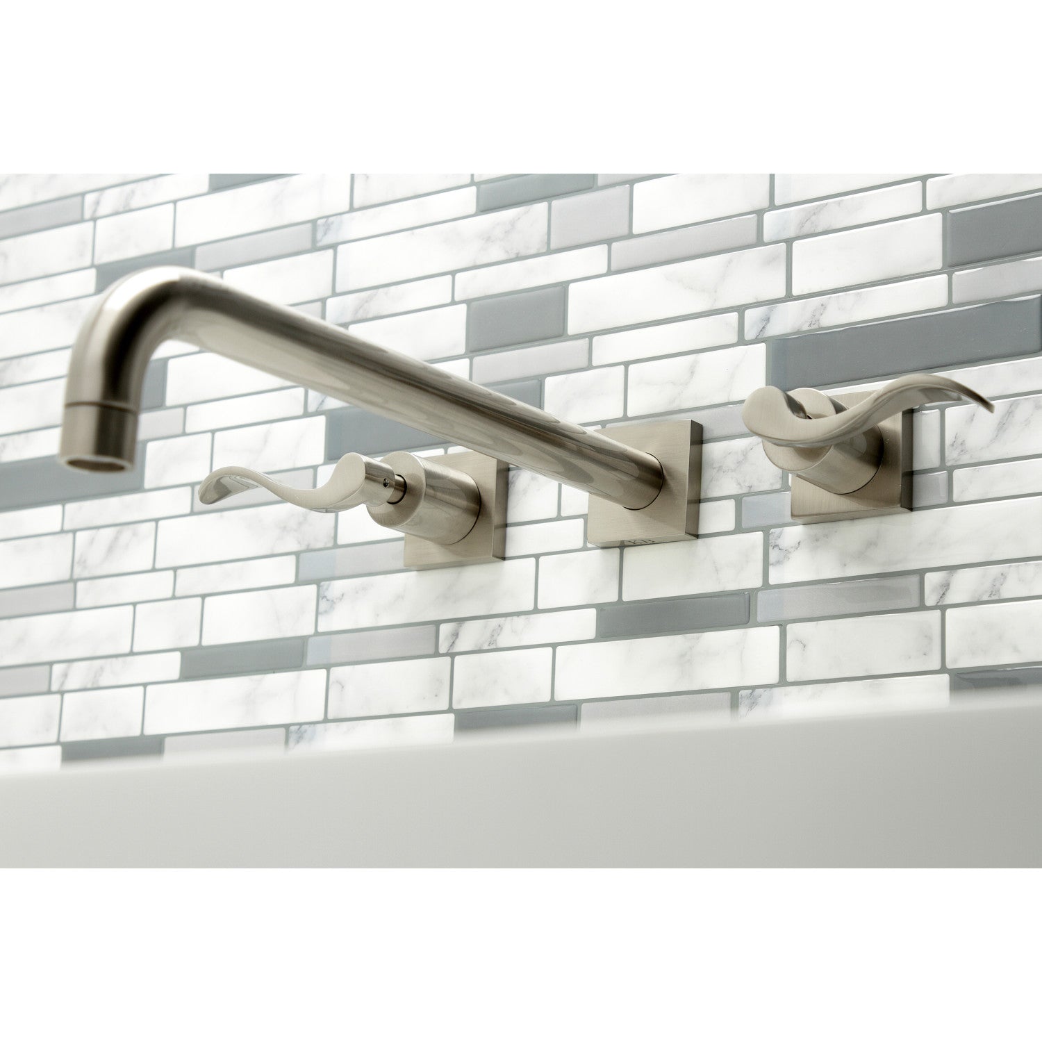NuWave KS6048DFL Two-Handle 3-Hole Wall Mount Roman Tub Faucet, Brushed Nickel