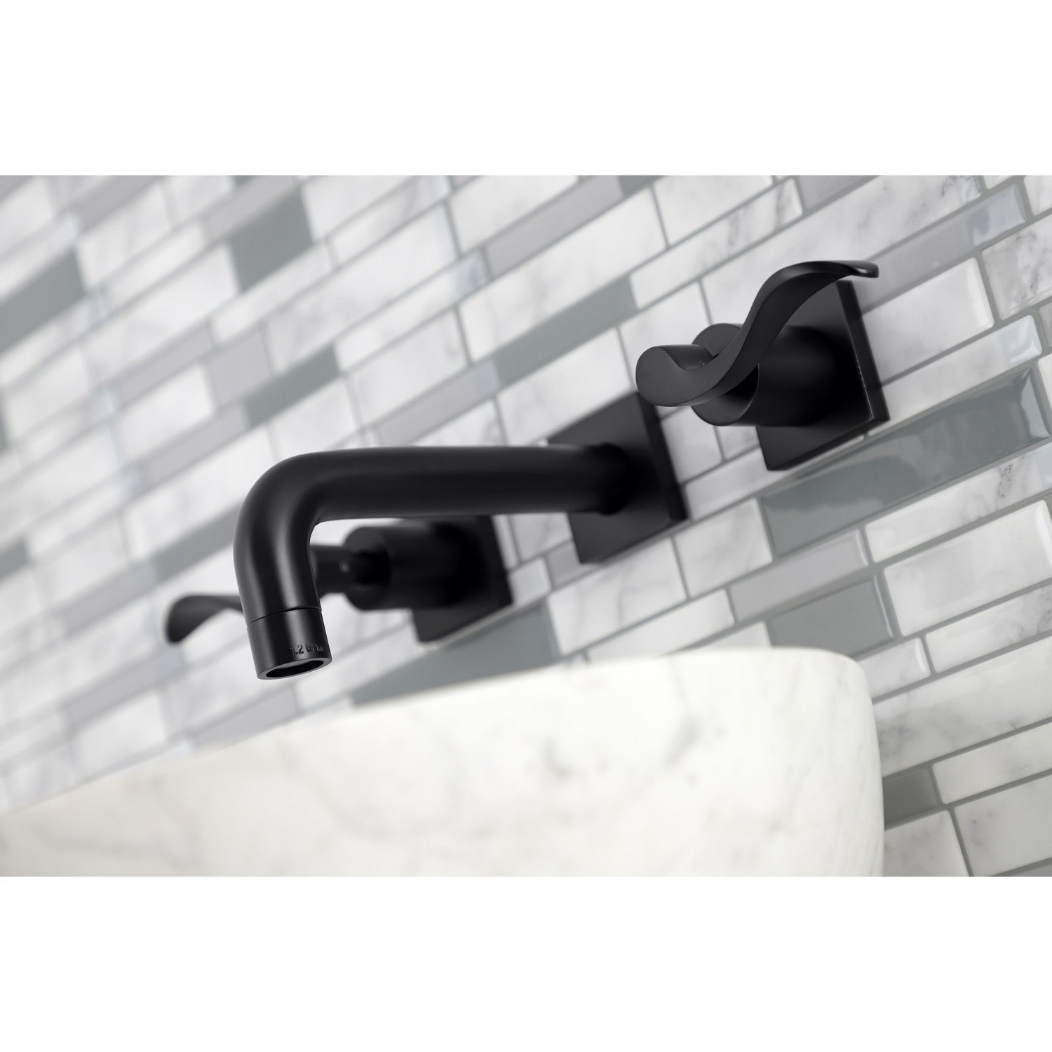 NuWave KS6120DFL Two-Handle 3-Hole Wall Mount Bathroom Faucet, Matte Black