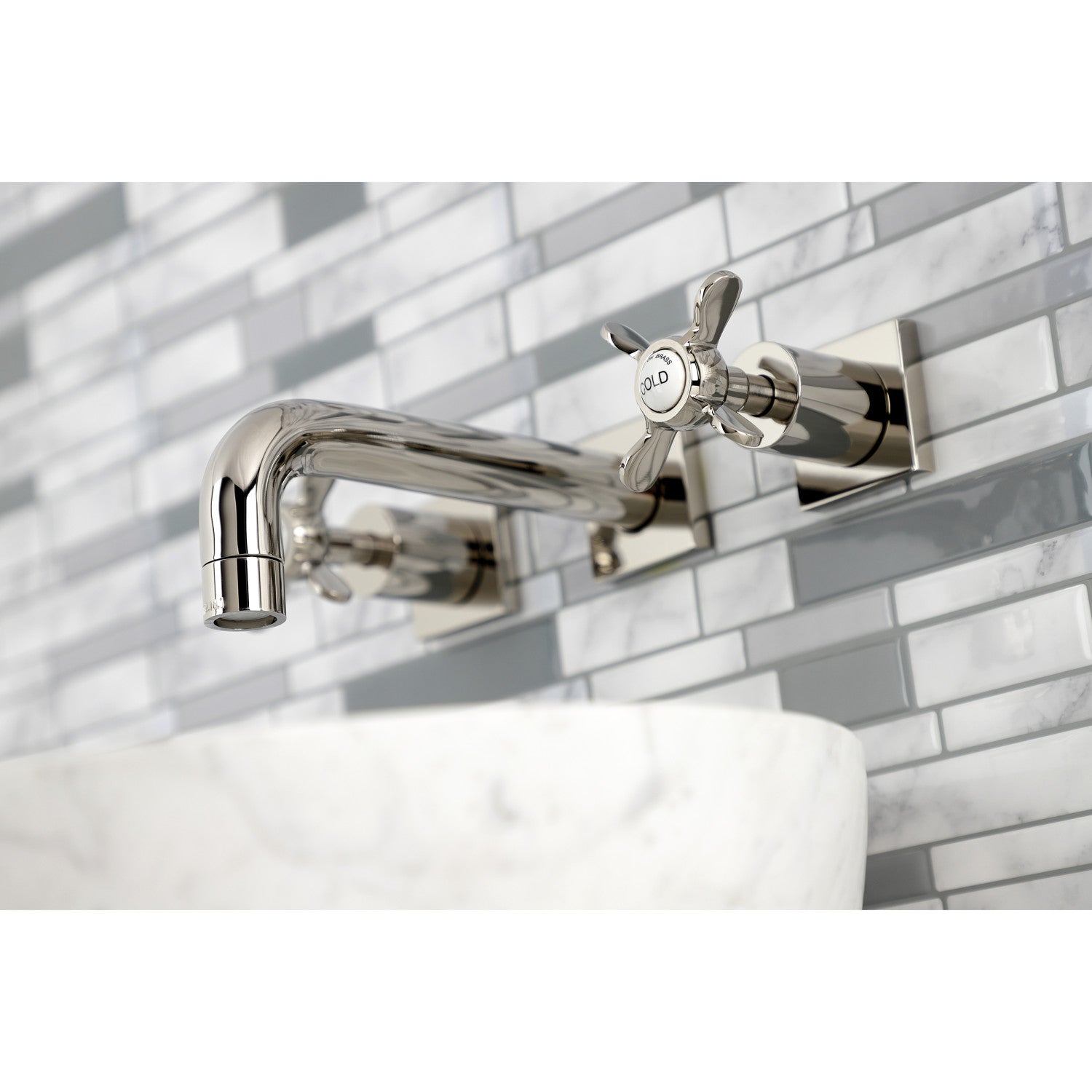 Essex KS6126BEX Two-Handle 3-Hole Wall Mount Bathroom Faucet, Polished Nickel