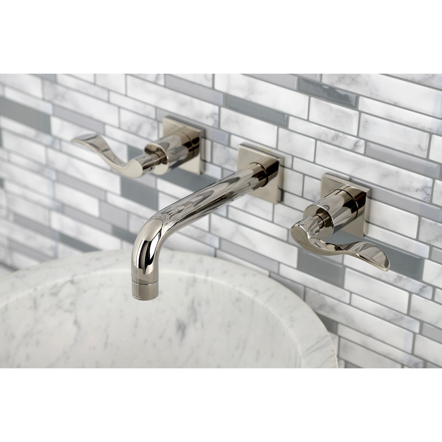 NuWave KS6126DFL Two-Handle 3-Hole Wall Mount Bathroom Faucet, Polished Nickel