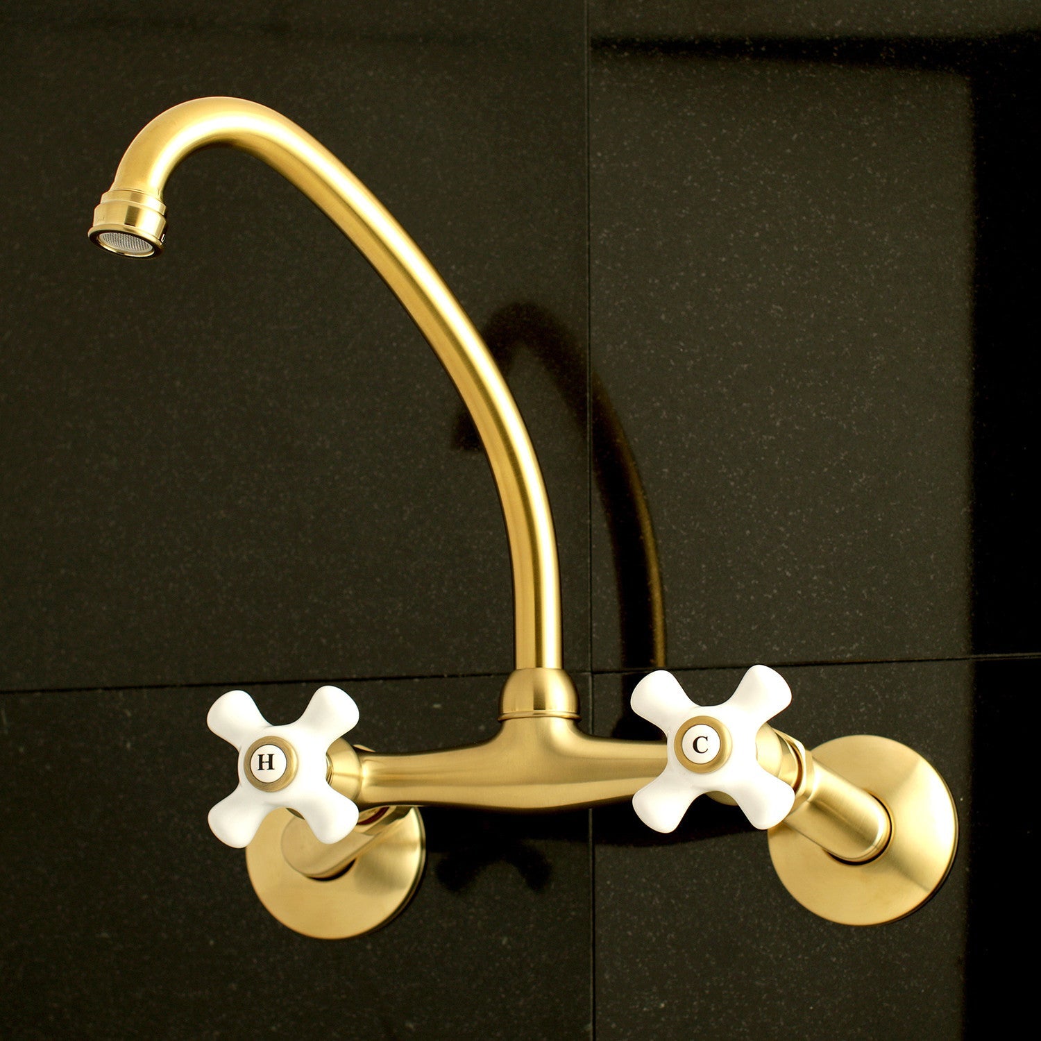 Kingston KS614SB Two-Handle 2-Hole Wall Mount Kitchen Faucet, Brushed Brass