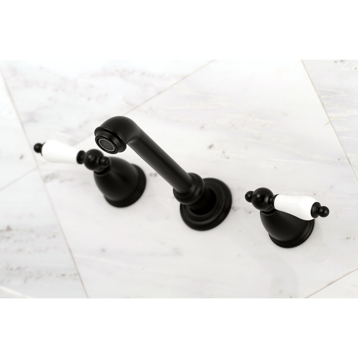 English Country KS7120PL Two-Handle 3-Hole Wall Mount Bathroom Faucet, Matte Black