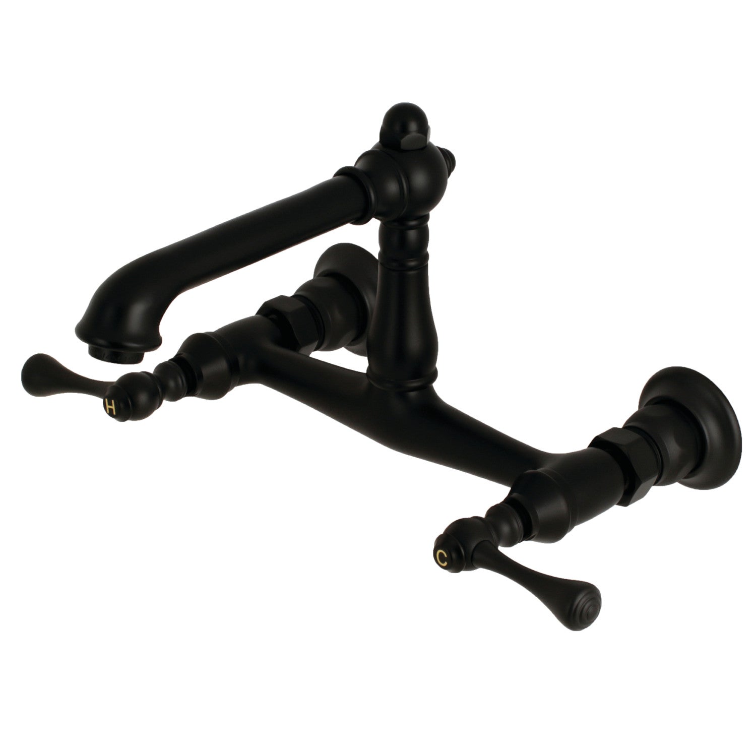 English Country KS7240BL Two-Handle 2-Hole Wall Mount Bathroom Faucet, Matte Black
