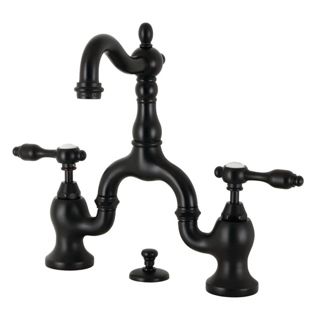 Tudor KS7970TAL Two-Handle 3-Hole Deck Mount Bridge Bathroom Faucet with Brass Pop-Up, Matte Black