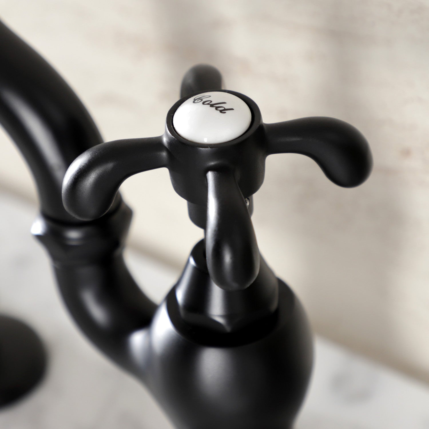 French Country KS7970TX Two-Handle 3-Hole Deck Mount Bridge Bathroom Faucet with Brass Pop-Up, Matte Black