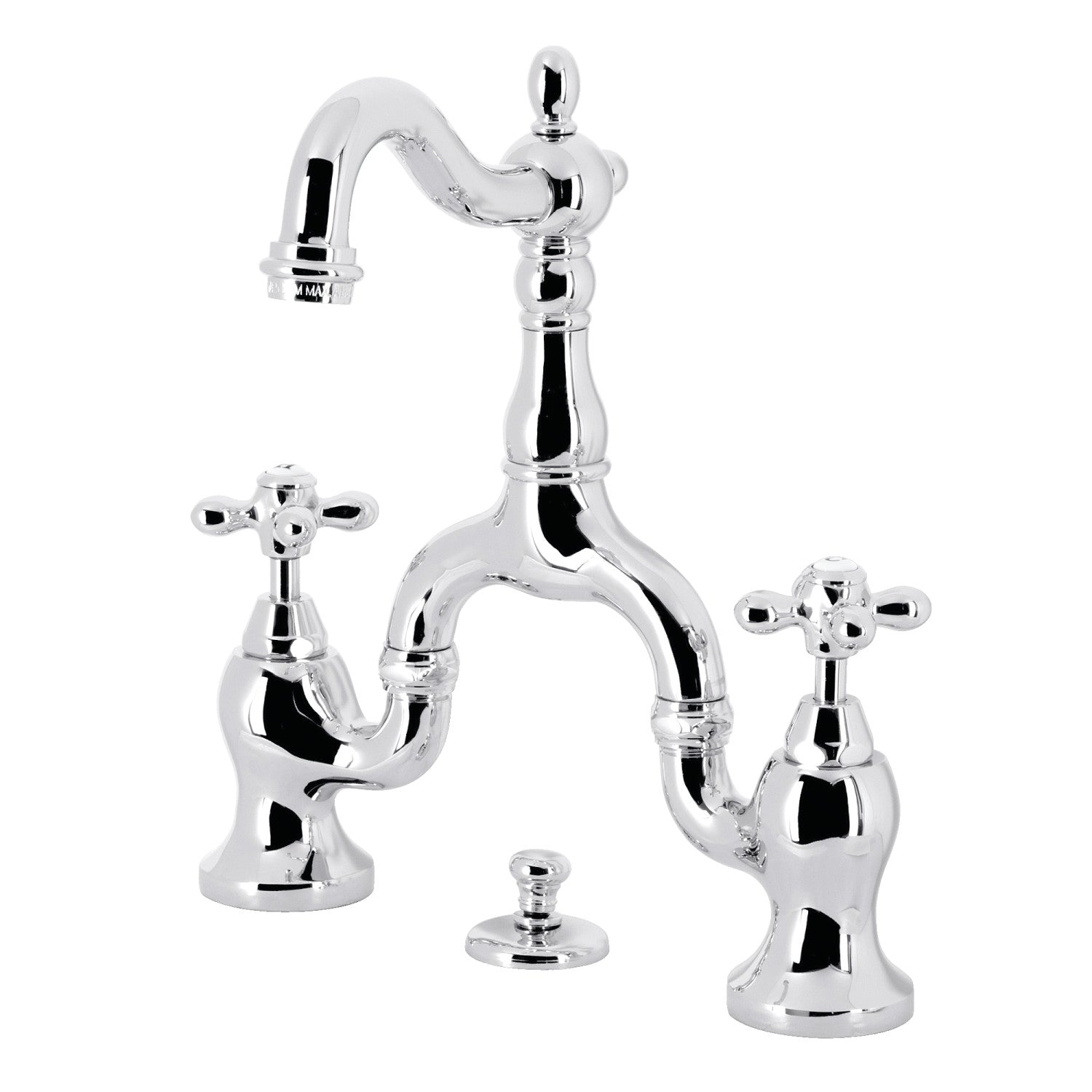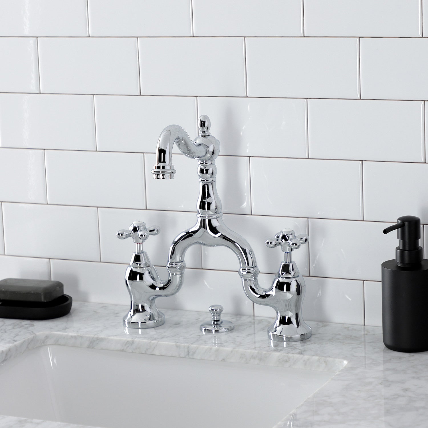 English Country KS7971AX Two-Handle 3-Hole Deck Mount Bridge Bathroom Faucet with Brass Pop-Up, Polished Chrome