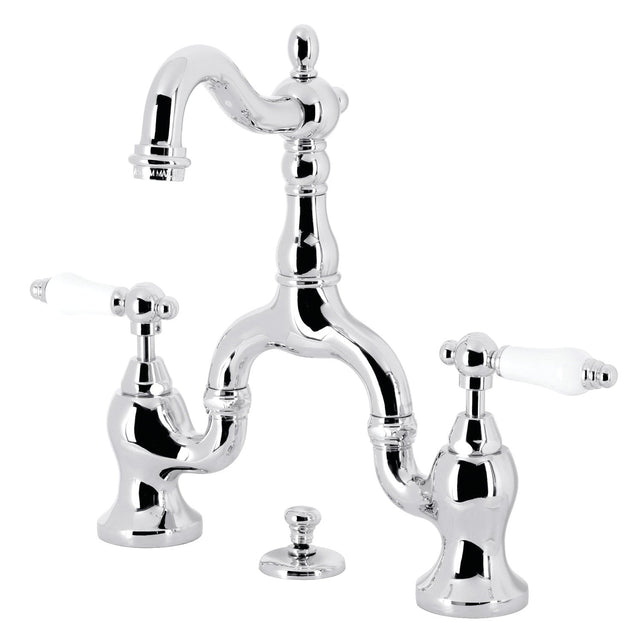 English Country KS7971PL Two-Handle 3-Hole Deck Mount Bridge Bathroom Faucet with Brass Pop-Up, Polished Chrome