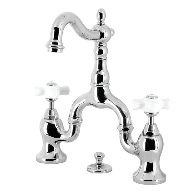 English Country KS7971PX Two-Handle 3-Hole Deck Mount Bridge Bathroom Faucet with Brass Pop-Up, Polished Chrome