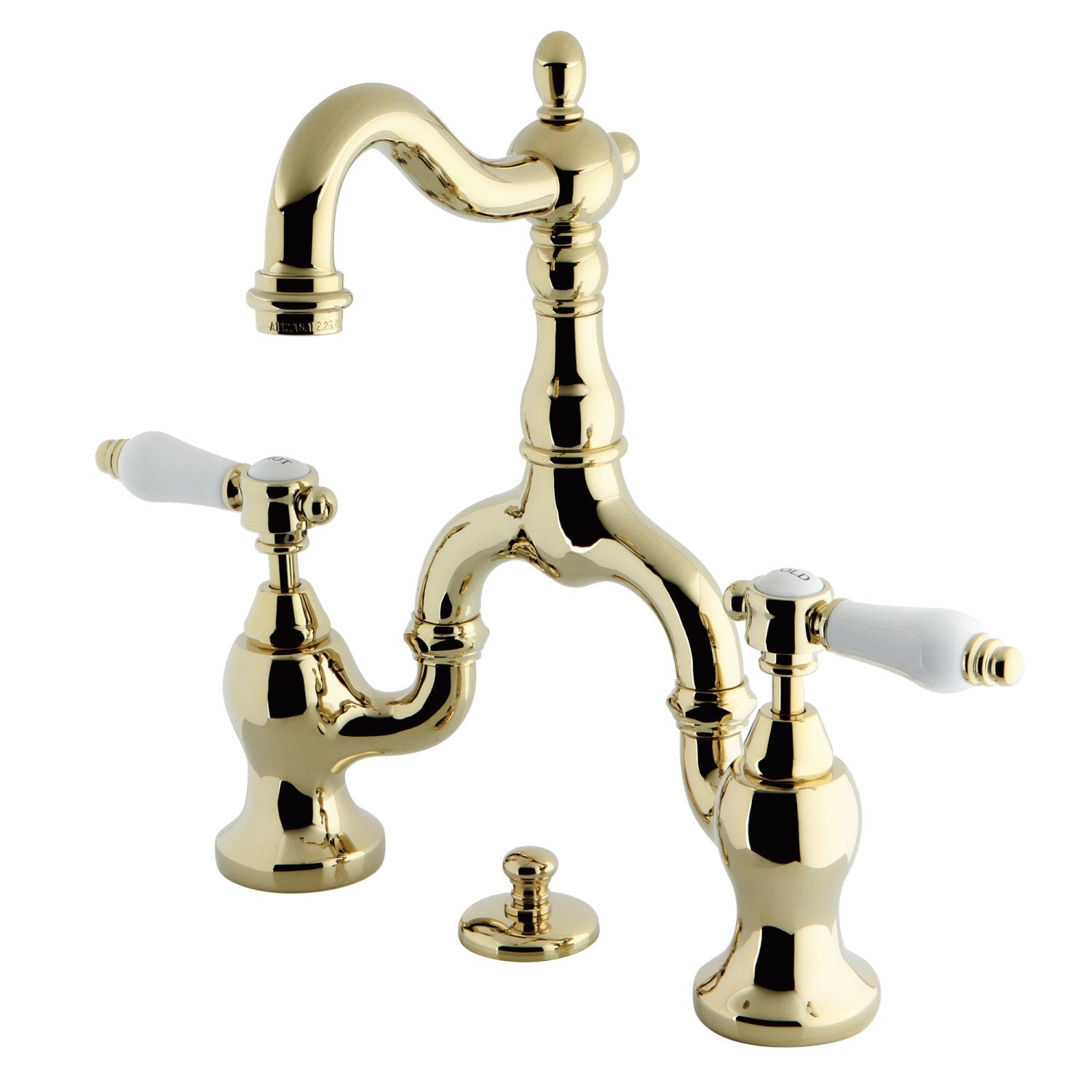 Bel-Air KS7972BPL Two-Handle 3-Hole Deck Mount Bridge Bathroom Faucet with Brass Pop-Up, Polished Brass
