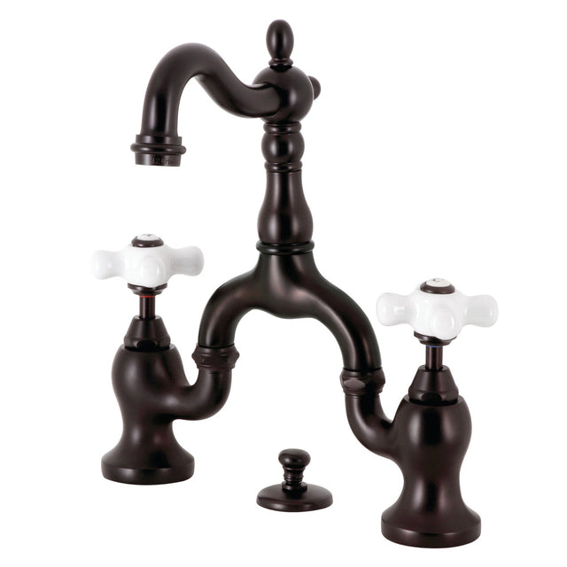 English Country KS7975PX Two-Handle 3-Hole Deck Mount Bridge Bathroom Faucet with Brass Pop-Up, Oil Rubbed Bronze