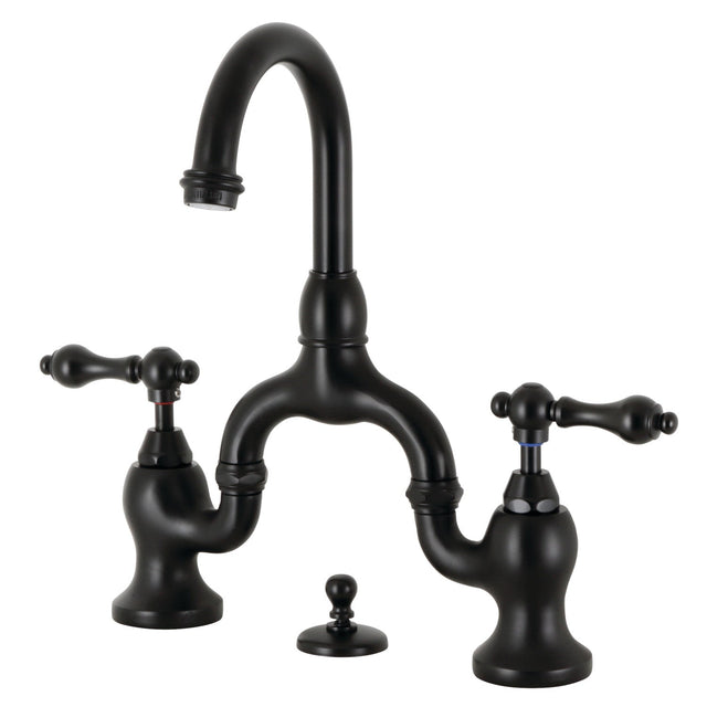English Country KS7990AL Two-Handle 3-Hole Deck Mount Bridge Bathroom Faucet with Brass Pop-Up, Matte Black