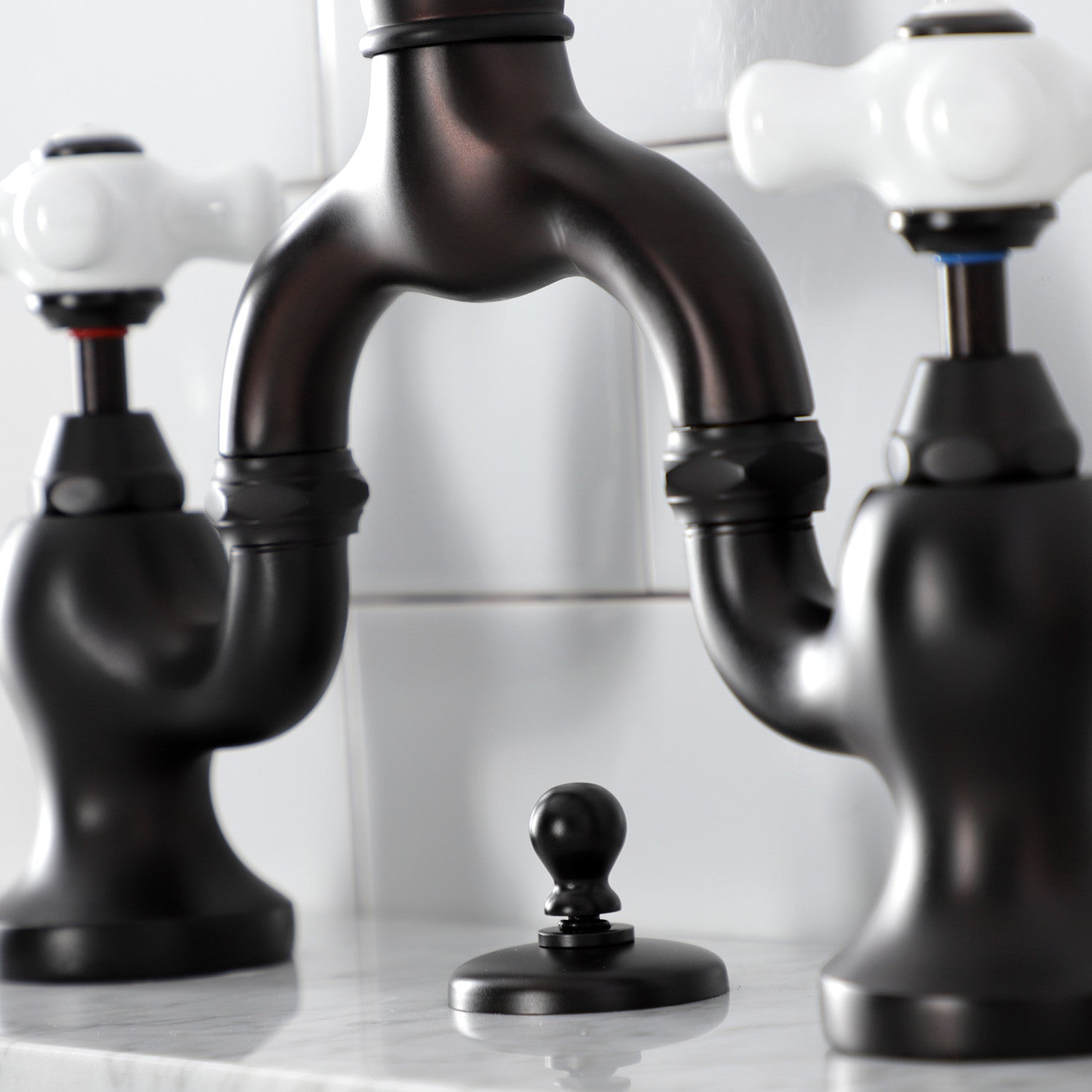 English Country KS7995PX Two-Handle 3-Hole Deck Mount Bridge Bathroom Faucet with Brass Pop-Up, Oil Rubbed Bronze