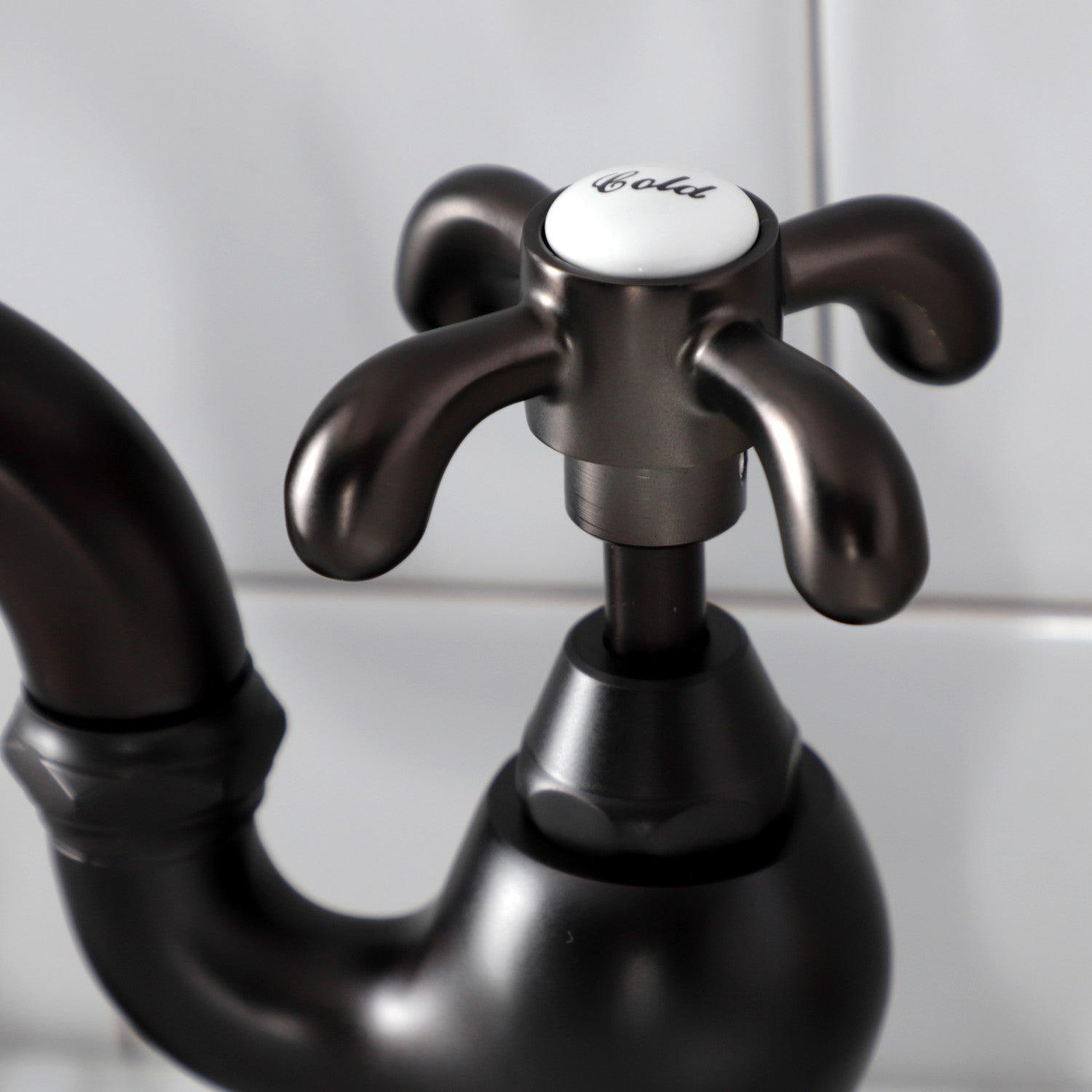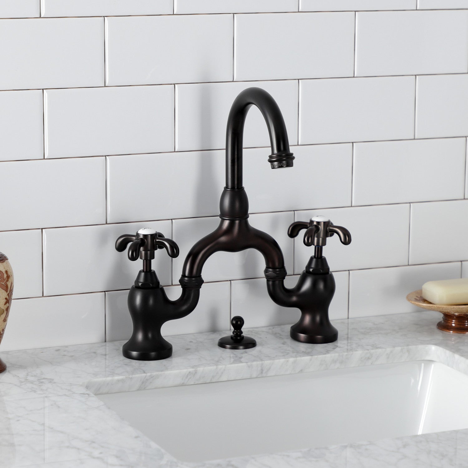French Country KS7995TX Two-Handle 3-Hole Deck Mount Bridge Bathroom Faucet with Brass Pop-Up, Oil Rubbed Bronze