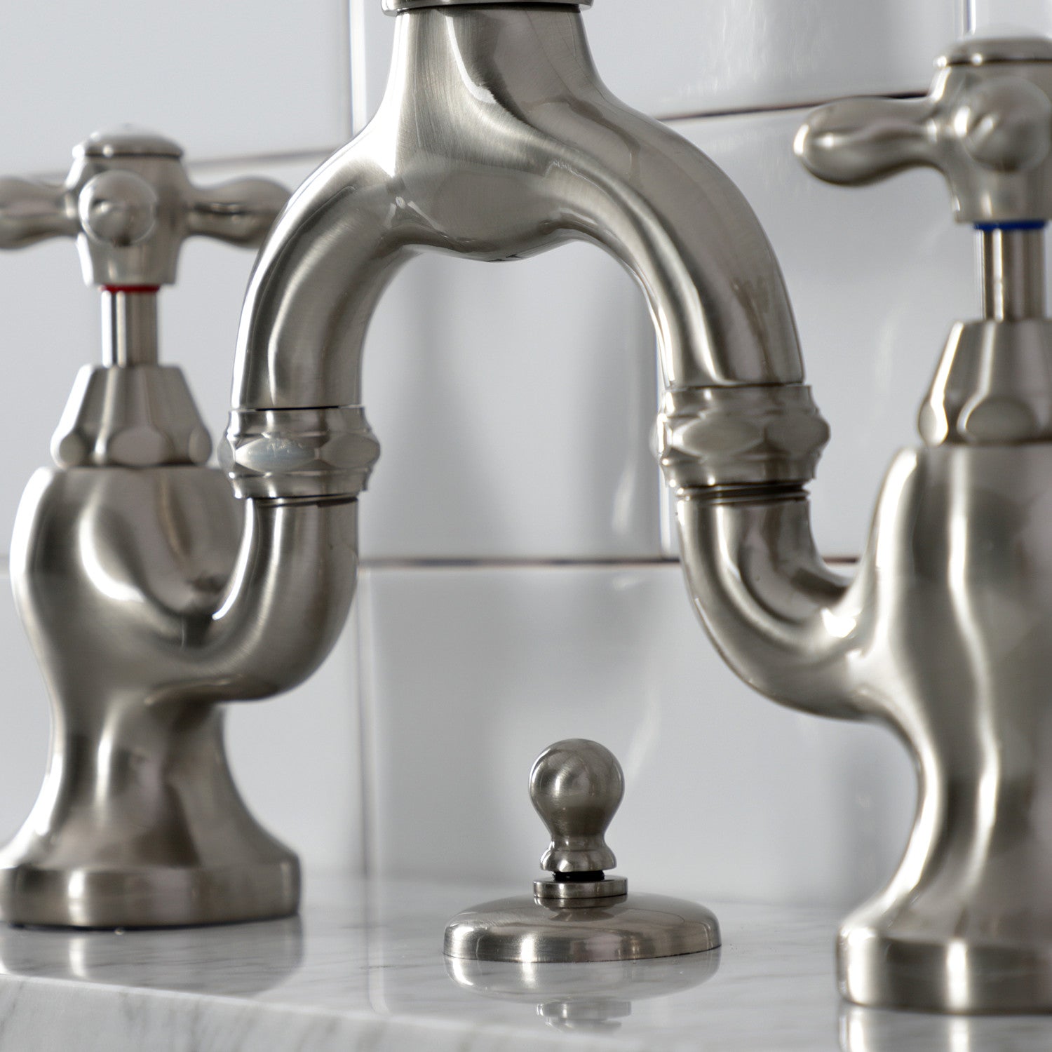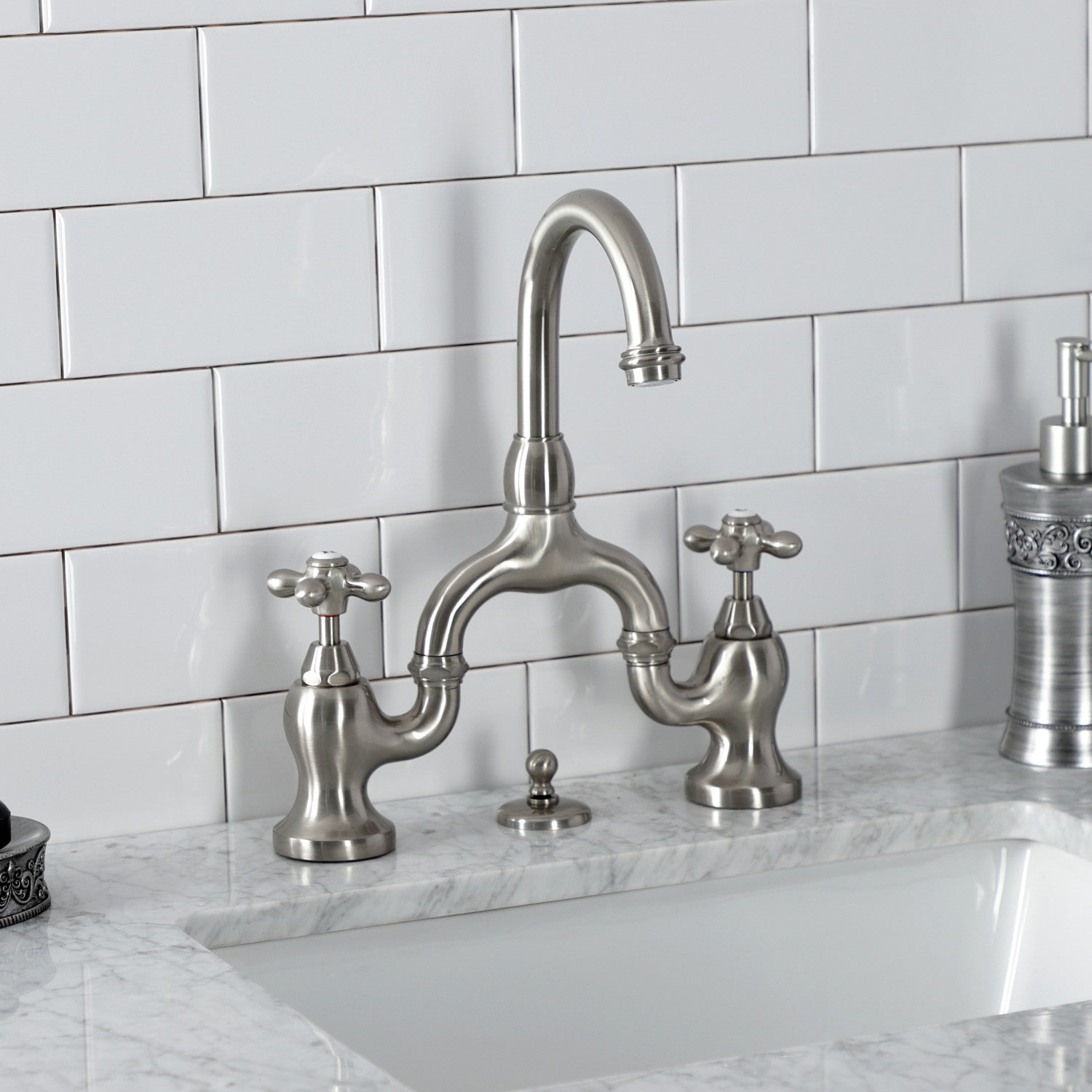 English Country KS7998AX Two-Handle 3-Hole Deck Mount Bridge Bathroom Faucet with Brass Pop-Up, Brushed Nickel