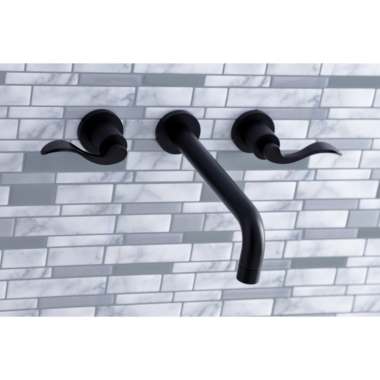 NuWave KS8020DFL Two-Handle 3-Hole Wall Mount Roman Tub Faucet, Matte Black