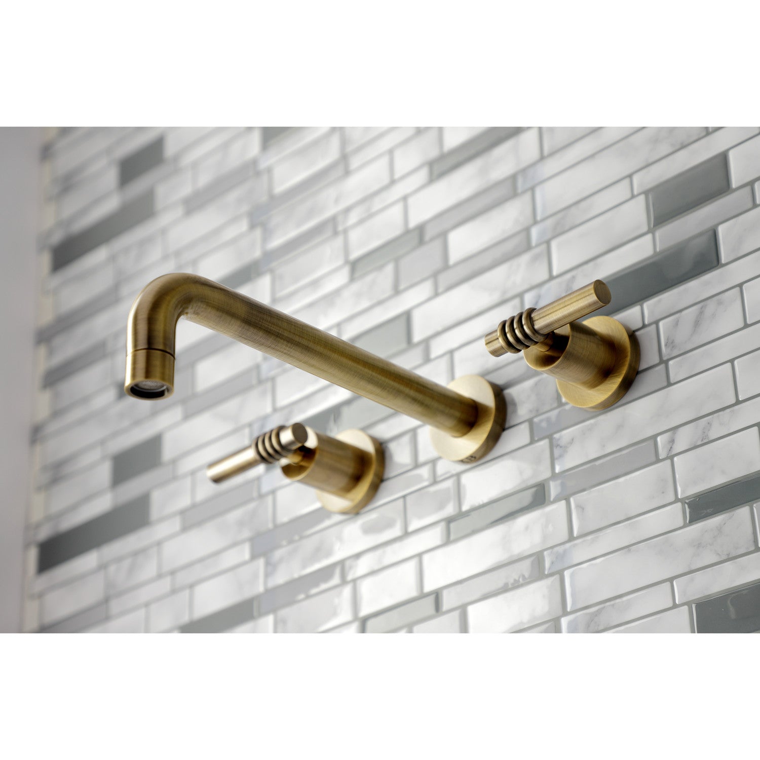 Milano KS8023ML Two-Handle 3-Hole Wall Mount Roman Tub Faucet, Antique Brass