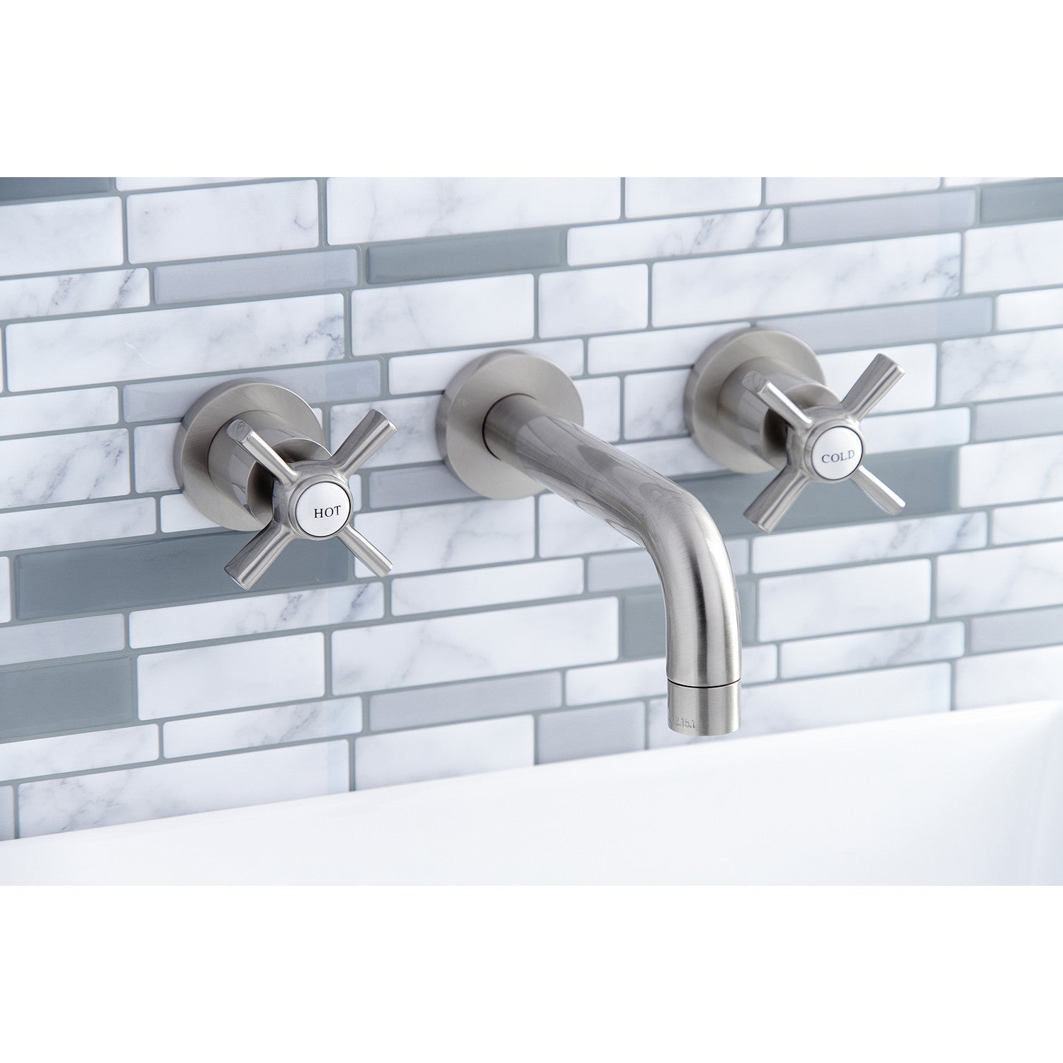 Millennium KS8128ZX Two-Handle 3-Hole Wall Mount Bathroom Faucet, Brushed Nickel