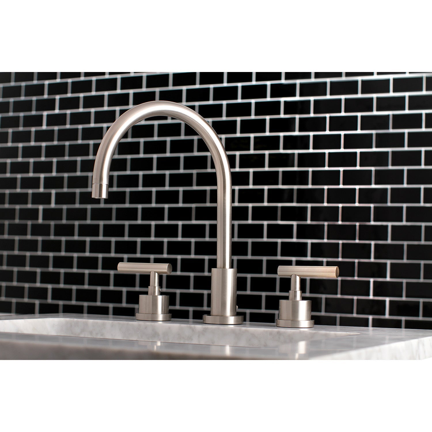 Manhattan KS8928CML Two-Handle 3-Hole Deck Mount Widespread Bathroom Faucet with Brass Pop-Up, Brushed Nickel