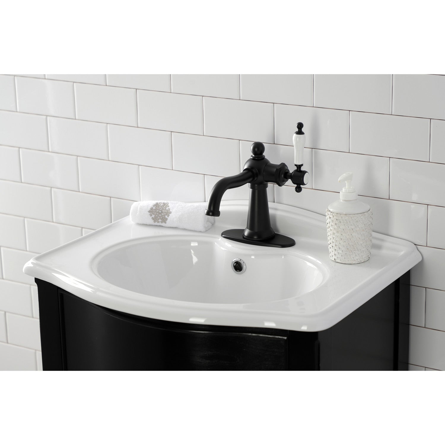 Nautical KSD154KLMB Single-Handle 1-Hole Deck Mount Bathroom Faucet with Push Pop-Up and Deck Plate, Matte Black