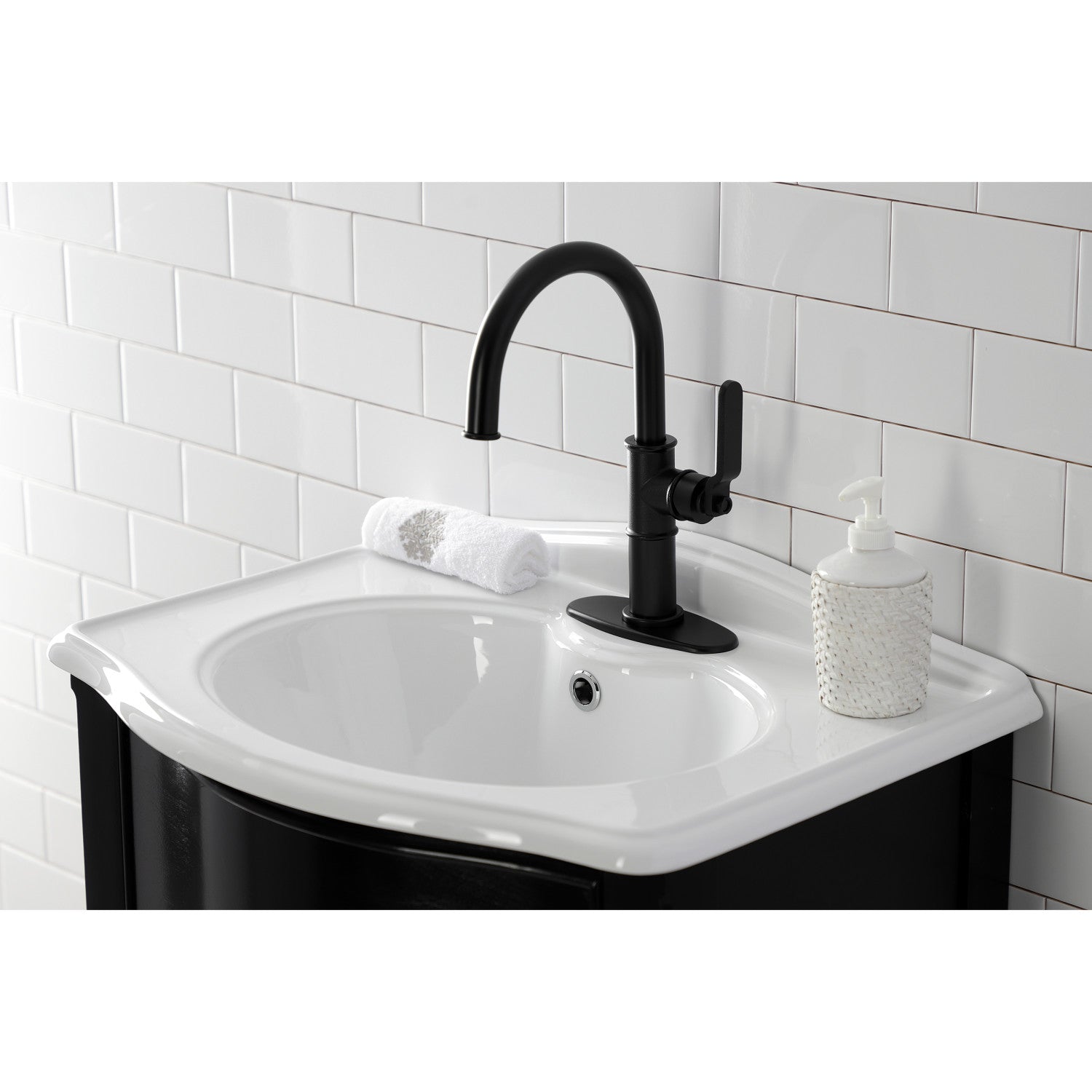 Whitaker KSD2230KL Single-Handle 1-Hole Deck Mount Bathroom Faucet with Push Pop-Up and Deck Plate, Matte Black