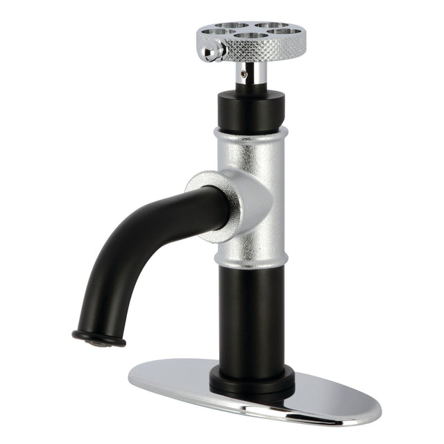 Webb KSD2821RKX Single-Handle 1-Hole Deck Mount Bathroom Faucet with Knurled Handle and Push Pop-Up Drain, Matte Black/Polished Chrome