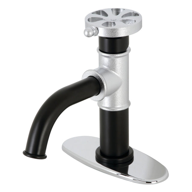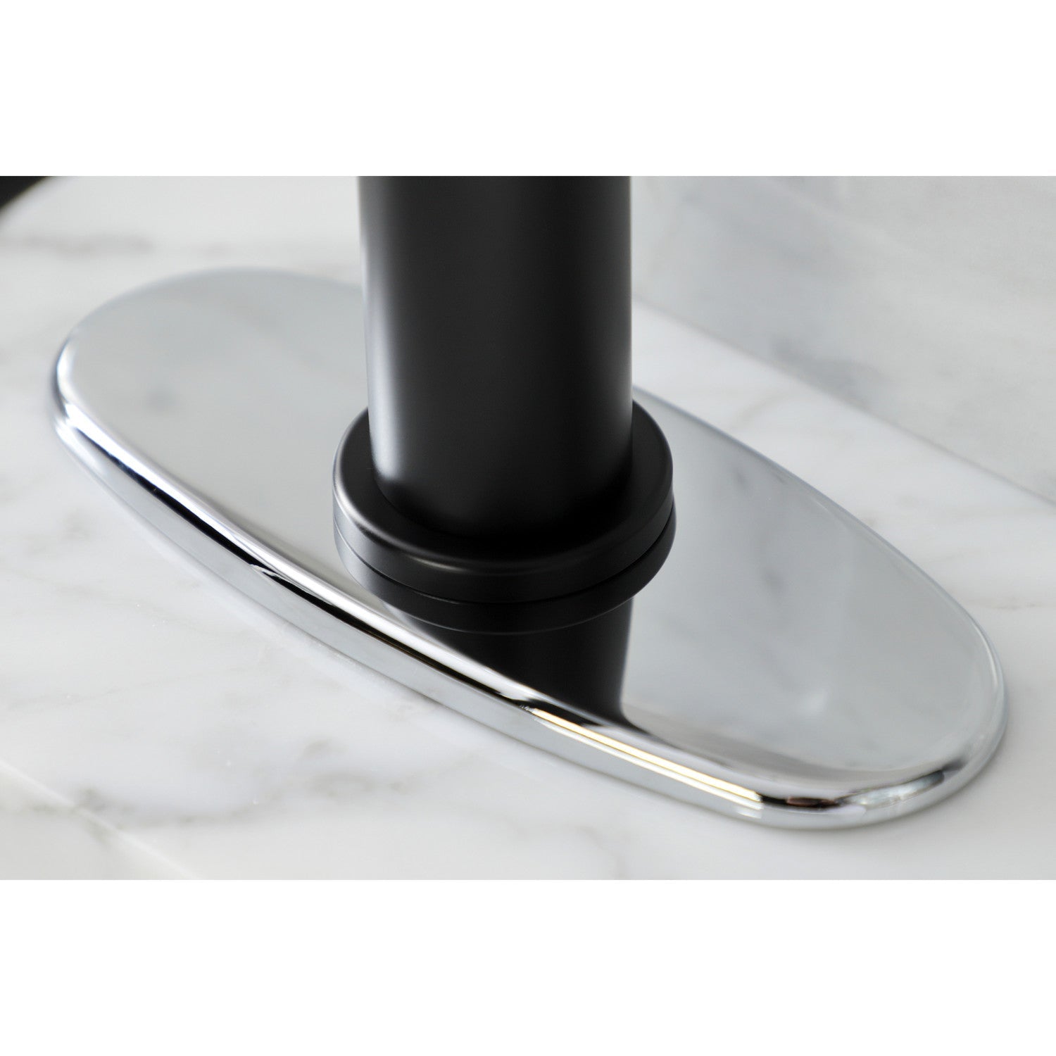 Belknap KSD2821RX Single-Handle 1-Hole Deck Mount Bathroom Faucet with Push Pop-Up and Deck Plate, Matte Black/Polished Chrome