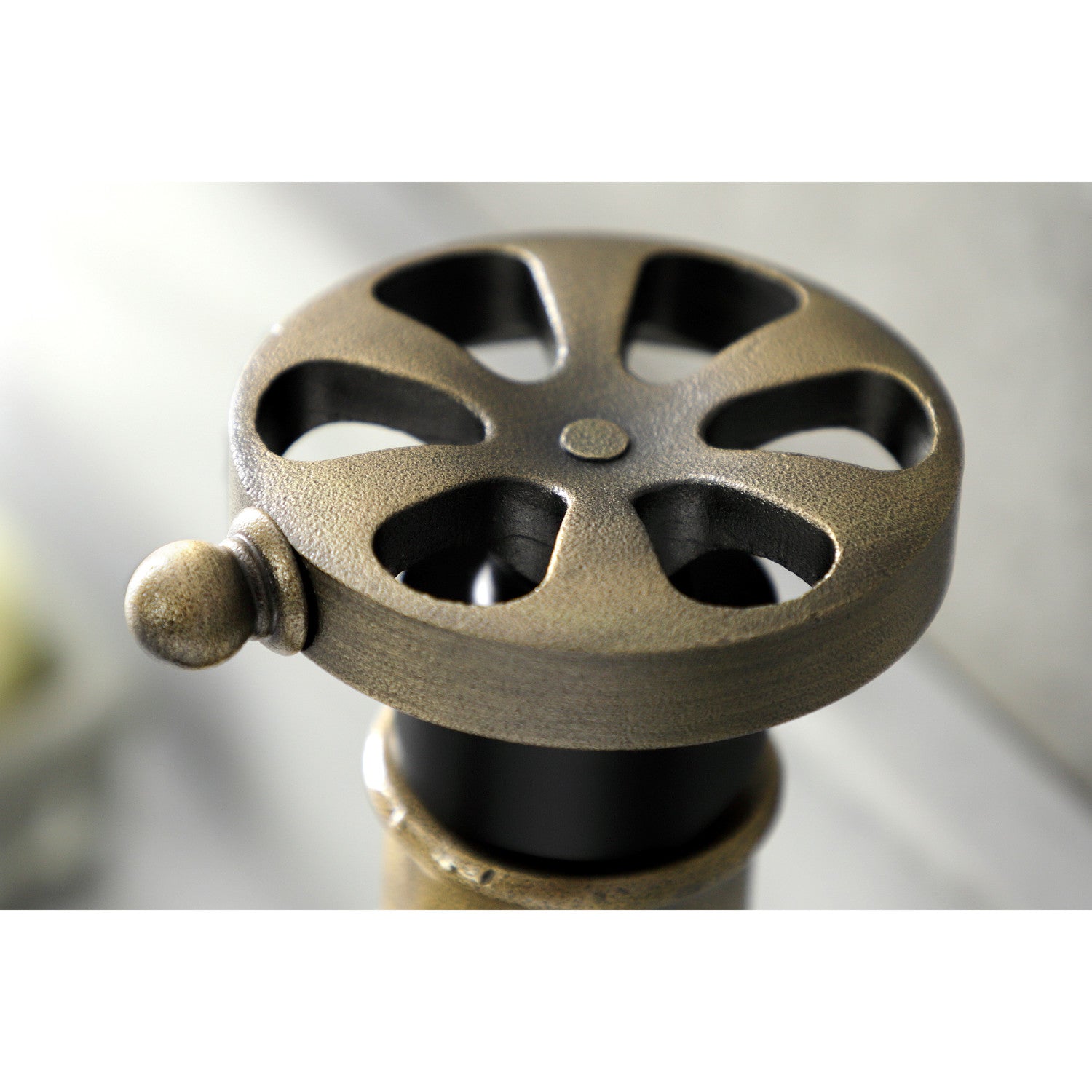 The exquisite design of this faucet tastefully flatters the elegant architecture of traditional homes with its fine detailing. Single-hole bathroom faucets provide a more streamlined look. Also, they will allow your bathroom to appear more spacious with the limited counter space they require. The Belknap single-handle bathroom faucet with push pop-up and its featured sturdy brass construction and premium matte black/antique brass finish are guaranteed to glamorize your home's traditional ensemble for years to come. A matching finish drain is also included.