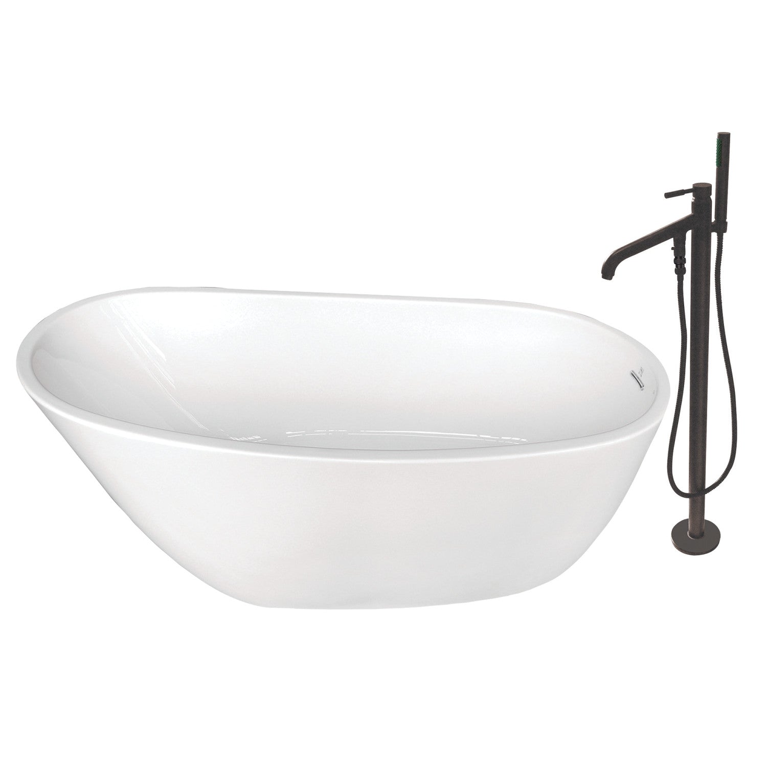 Aqua Eden KTRS592928A5 59-Inch Acrylic Single Slipper Freestanding Tub Combo with Faucet and Drain, White/Oil Rubbed Bronze