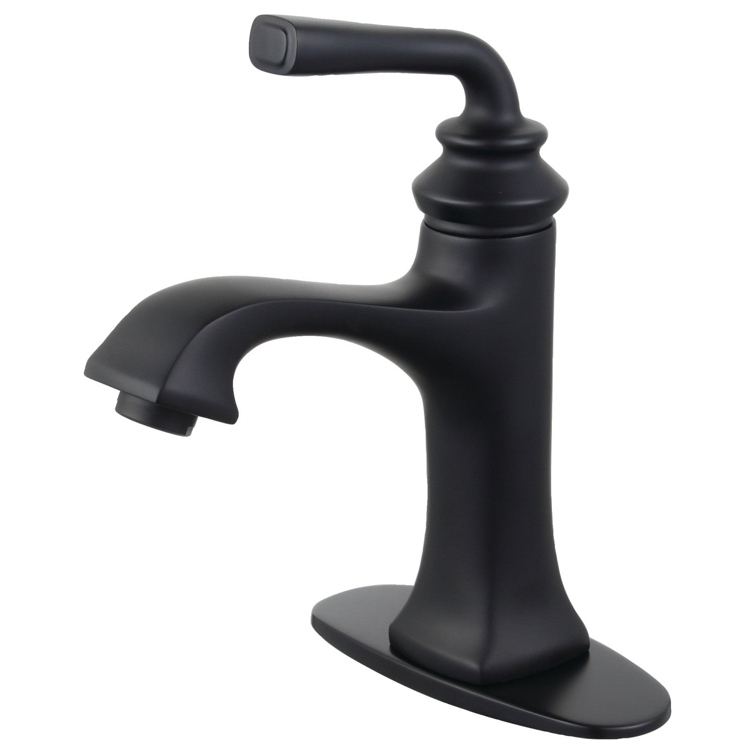 Classical artistry from the late 19th Century to early 20th Century is mirrored beautifully within this faucet's traditional charm. Single-hole bathroom faucets provide a more streamlined look. Also, they will allow your bathroom to appear more spacious with the limited counter space they require. The Restoration single-handle bathroom faucet with push pop-up and deck plate and its featured sturdy brass construction and premium matte black finish are guaranteed to glamorize your home's ensemble for years to come. Bring this faucet to your home to offer a touch of old design and exquisite detail. A matching finish drain is also included.
