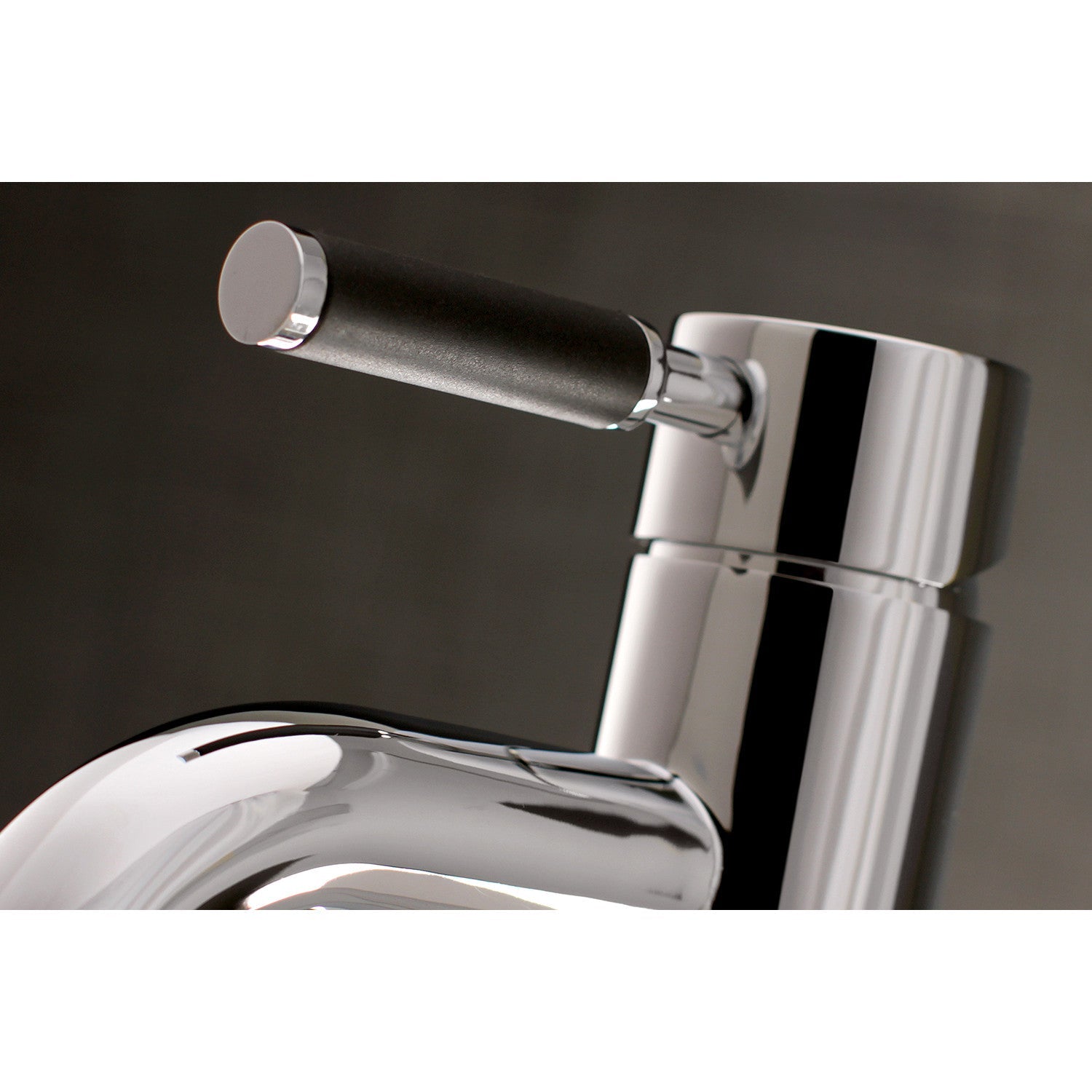 This faucet tastefully interweaves top-notch ergonomic design and the sheen of contemporary simplicity with its black silicone rubber coated handles and cylindrical facets. Single-hole bathroom faucets provide a more streamlined look. Also, they will allow your bathroom to appear more spacious with the limited counter space they require. The Kaiser single-handle bathroom faucet and its featured sturdy brass construction and premium polished chrome finish are guaranteed to glamorize your home's modern ensemble for years to come. Furnish your home surrounding with the modern flair of this fixture. A matching finish drain is also included.