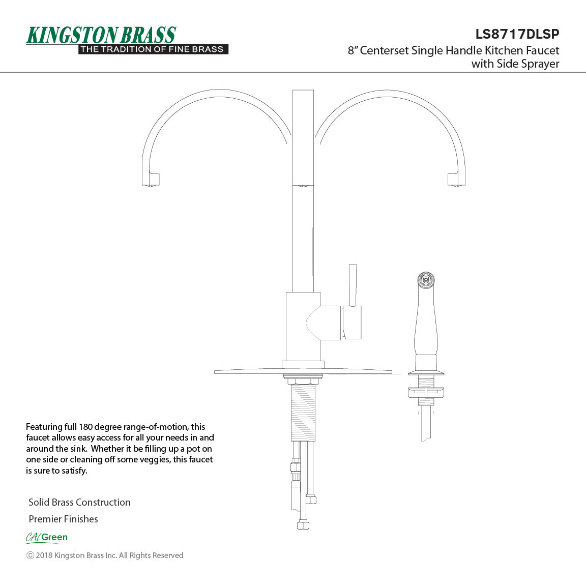This faucet boasts bold, sleek design with its cylindrical styling. Easily adaptable to any kitchen, the Concord single handle kitchen faucet with side sprayer is prized for its easy-to-use single handle. This makes it the perfect fixture for multitasking as you can adjust temperature and volume in one swipe. Enjoy the strong and durable brass material and matte black/polished chrome finish that will last for years to come. The included matching finish side-sprayer also adds convenience in cleaning hard-to-reach areas.