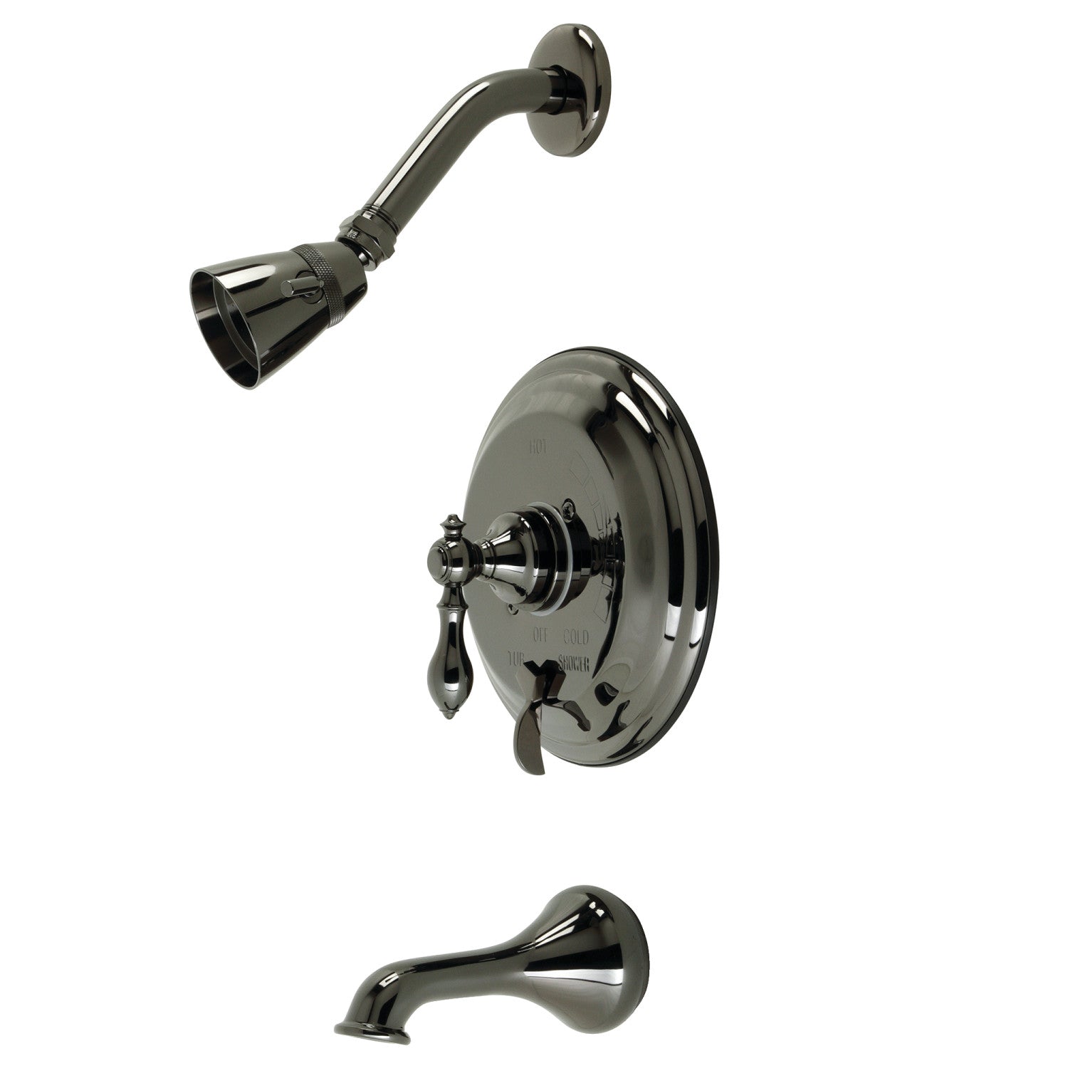 Add refinement and charm to your bathroom with this tub and shower faucet's simple design. Complete with an easy-to-turn lever handle, an optimum bathing experience awaits. Enjoy the sturdy brass construction and premium black stainless steel finish for a fixture that will last for years to come. A pressure balanced valve is included for safety and protection against accidental burns.