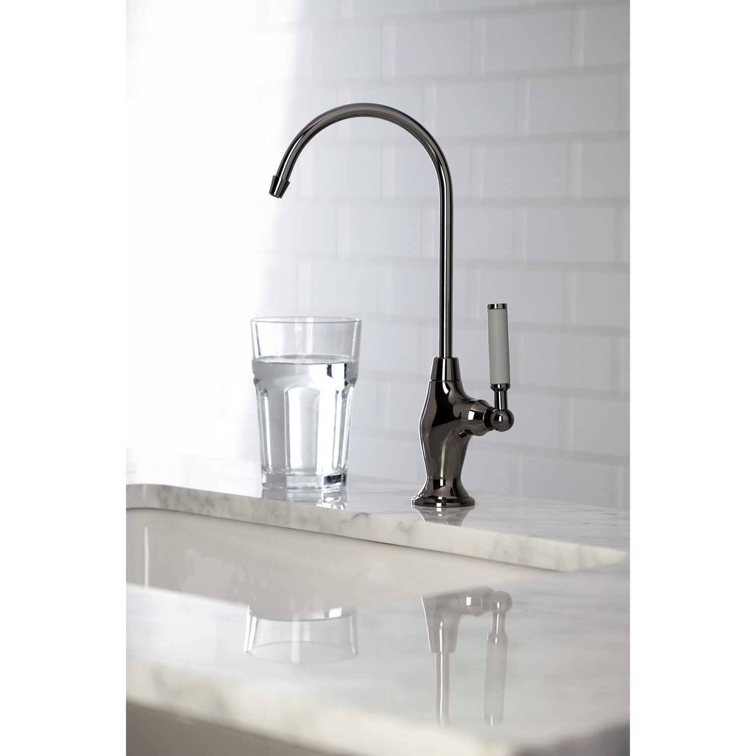 Allow this faucet to provide you with instant, crystal clear drinking water while reducing plastic waste. Ergonomically designed, it will enhance your kitchen's traditional theme while adding functionality. Use with an under the counter water filtration system.